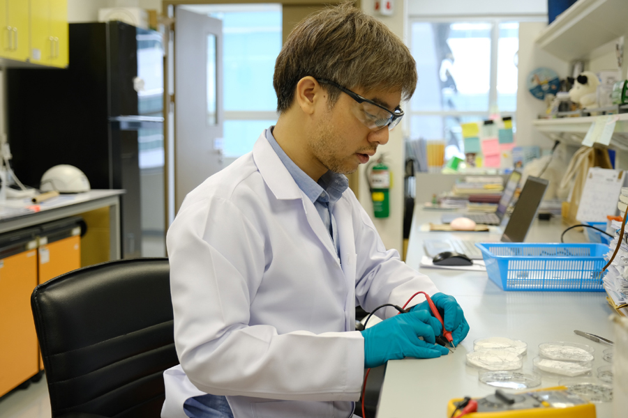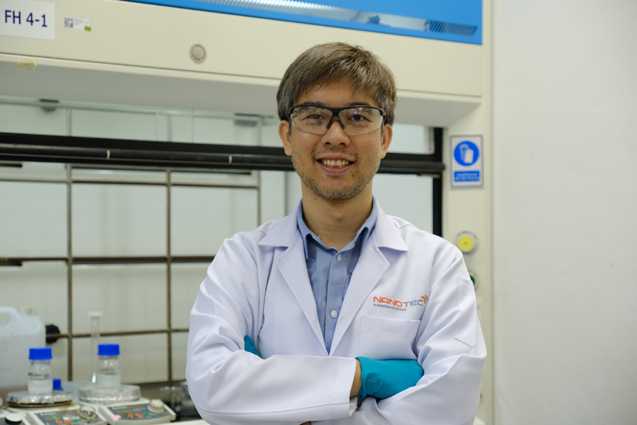 “เพื่อที่จะเพิ่มทางเลือกของระบบกักเก็บพลังงานนอกเหนือจากแบตเตอรี่ลิเทียมไอออนดังกล่าว เรามองไปที่แบตเตอรี่สังกะสีไอออน (Zn-ion battery) ซึ่งเป็นหนึ่งในระบบกักเก็บพลังงานที่ปลอดภัย เหมาะสมกับการใช้เป็นระบบกักเก็บพลังงานเพื่ออุปกรณ์อิเล็กทรอนิกส์แบบสวมใส่เนื่องจากใช้น้ำเป็นอิเล็กโทรไลต์ ไม่ไวไฟ ลดความเสี่ยงการระเบิด และสามารถประกอบได้ในสภาวะแวดล้อมปกติ” ดร. นครินทร์กล่าว