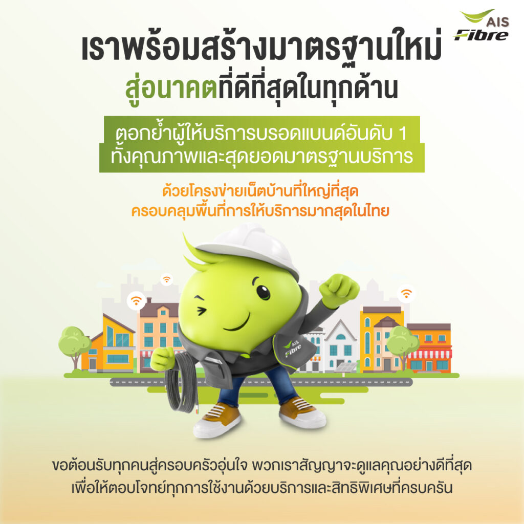 ทั้งนี้ ผู้สนใจใช้บริการเน็ตบ้านยังสามารถเลือกใช้บริการจาก AIS Fibre และ 3BB ได้ด้วยมาตรฐานบริการคุณภาพ พร้อมเพิ่มเติมด้วยประสบการณ์ที่เป็นประโยชน์มากยิ่งขึ้น ทั้งความครอบคลุมของเครือข่าย, นวัตกรรมทันสมัยตอบโจทย์การใช้งานแต่ละกลุ่ม รวมถึงบริการดิจิทัล คอนเทนต์ และสิทธิพิเศษที่คุ้มค่าและหลากหลายมากขึ้นอันเกิดจากการทำงานร่วมกันระหว่าง AIS Fibre และ 3BB”