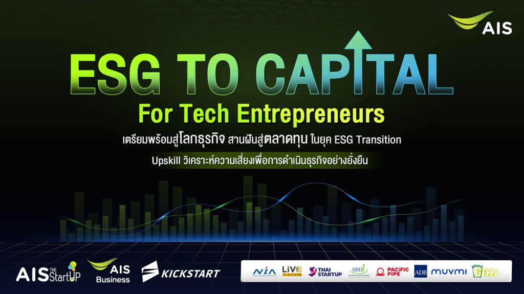 สำหรับโครงการ “ESG to Capital for Tech Entrepreneurs” เป็นอีกหนึ่งความตั้งใจของ AIS The StartUp ที่มุ่งอัพสกิลให้กับผู้ประกอบการสตาร์ทอัพ มีความเข้าใจในการวิเคราะห์ความเสี่ยงการลงทุนและการดำเนินธุรกิจอย่างยั่งยืนภายใต้กรอบการดำเนินงาน ESG ด้วยเนื้อหาที่มีความเข้มข้นจากพาร์ทเนอร์และวิทยากรจากองค์กรชั้นนำระดับประเทศ ที่จะมาแบ่งปันประสบการณ์และแลกเปลี่ยนตลอด 3 เดือนเต็ม