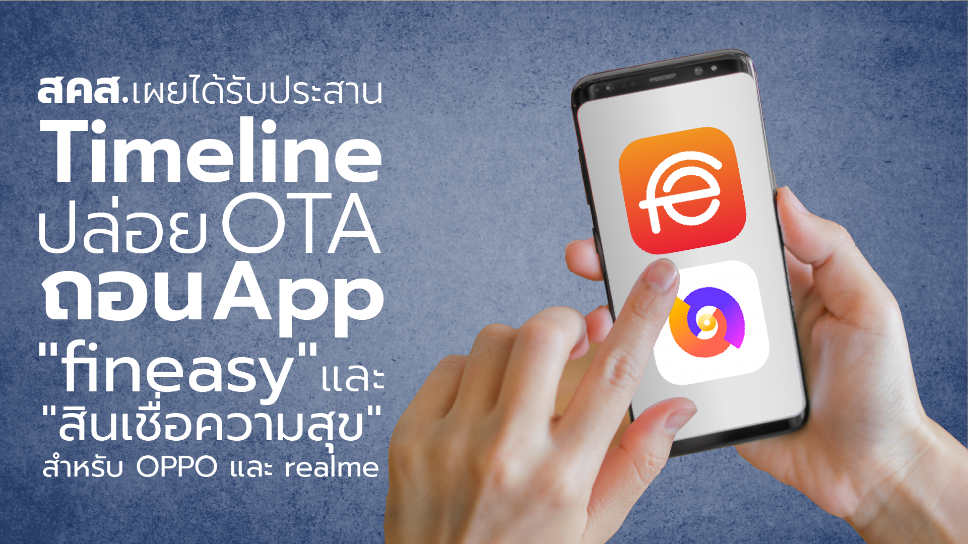 สำนักงานคณะกรรมการคุ้มครองข้อมูลส่วนบุคคล (สคส.) หรือ PDPC เปิดเผยว่า ทางสคส.ได้รับการประสานจาก ทาง OPPO – realme เกี่ยวกับแอพฯ “Fineasy” และ แอพฯ“สินเชื่อความสุข” ว่า ได้กำหนดเวลาการปล่อย OTA (Over-The -Air หรือการส่งสัญญาณมาที่เครื่องมือถือโดยตรง) พร้อมเวอร์ชั่นอัพเดตให้กับทางผู้ใช้งาน ตั้งแต่วันที่ 16 มกราคม 2568 เป็นต้นไป โดยผู้ใช้งานสมาร์ทโฟนของโทรศัพท์มือถือทั้ง 2 ยี่ห้อนี้ จะได้รับการอัพเดต OTA ซึ่งเป็นเวอร์ชันระบบใหม่ที่ไม่มีการติดตั้งแอพฯ “สินเชื่อความสุข” และ “Fineasy”