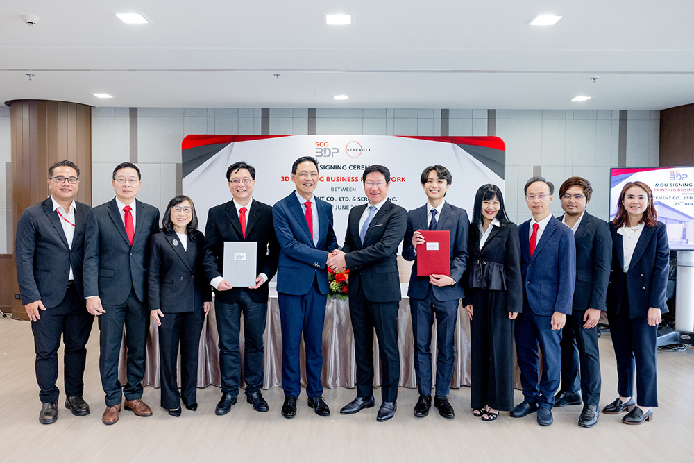 ธุรกิจเอสซีจี ซีเมนต์แอนด์กรีนโซลูชันส์ และ Serendix บริษัทสตาร์ทอัพผู้เชี่ยวชาญด้านที่อยู่อาศัย ในประเทศญี่ปุ่นด้วยการประยุกต์ใช้เทคโนโลยี 3D Printing ในการก่อสร้าง ร่วมลงนามบันทึกข้อตกลงความร่วมมือ (MOU) เพิ่มขีดความสามารถในงานก่อสร้างจากเทคโนโลยี 3D Printing ผนวกรวมกับปูนมอร์ตาร์สูตรเฉพาะสำหรับงานพิมพ์สามมิติ มีคุณสมบัติเนื้อเนียนสวยงาม ทนทานต่อทุกสภาพแวดล้อม และงานก่อสร้างที่ซับซ้อน พร้อมเดินหน้าผลักดันนวัตกรรมงานก่อสร้างสีเขียวรองรับการเติบโตของอุตสาหกรรมก่อสร้างยุคใหม่ในตลาดญี่ปุ่นสู่เวทีโลกอย่างแข็งแกร่ง ตอบโจทย์ที่อยู่อาศัยยุคใหม่ ลดคาร์บอน ลดแรงงาน เพิ่มความเร็ว