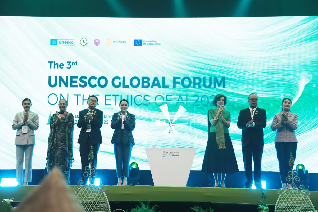 วันที่ 25 มิถุนายน 2568 ที่โรงแรมเซ็นทาราแกรนด์ และบางกอกคอนเวนชันเซ็นเตอร์ เซ็นทรัลเวิลด์ กรุงเทพฯ นางสาวแพทองธาร ชินวัตร นายกรัฐมนตรี เป็นประธานในพิธีเปิดการประชุมวิชาการนานาชาติ “The 3rd UNESCO Global Forum on the Ethics of AI 2025” ซึ่งประเทศไทยในฐานะ เจ้าภาพการประชุม ภายใต้ 3 กระทรวงหลัก คือกระทรวงดิจิทัลเพื่อเศรษฐกิจและสังคม (ดีอี) , กระทรวงการอุดมศึกษา วิทยาศาสตร์ วิจัยและนวัตกรรม (อว.) และกระทรวงศึกษาธิการ (ศธ.) ร่วมกับ องค์การการศึกษา วิทยาศาสตร์และวัฒนธรรมแห่งสหประชาชาติ (UNESCO) จัดขึ้นระหว่างวันที่ 24–27 มิถุนายน 2568 โดยมีผู้เข้าร่วมประชุมกว่า 104 ประเทศทั่วโลก ทั้งนี้ประเทศไทยได้ร่วมแสดงบทบาทผู้นำระดับภูมิภาคในการพัฒนา AI อย่างมีจริยธรรม และพร้อมเดินหน้าพัฒนา AI อย่างมีธรรมาภิบาล เพื่อให้เกิดประโยชน์กับทุกคนอย่างเท่าเทียม โดยไม่ทิ้งใครไว้ข้างหลัง