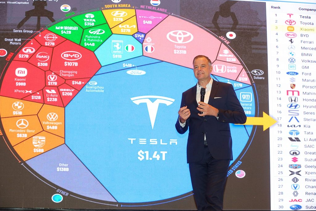 ด้านคุณคริสเตียน วิดมานน์ รองประธานอาวุโสและกรรมการผู้จัดการฝ่ายยานยนต์ ของ บริษัท อาร์เอ็มเอ กรุ๊ป จำกัด (RMA GROUP) กล่าวในหัวข้อ “The Future of Mobility” โดยกล่าวถึงวิสัยทัศน์ของกลุ่มบริษัท RMA ที่ได้นำเสนอวิวัฒนาการของอุตสาหกรรมยานยนต์ โดยเน้นแนวโน้มรถยนต์ไฟฟ้า การเปลี่ยนแปลงของตลาด โดยเฉพาะการที่อุตสาหกรรมกำลังเผชิญกับ “การเปลี่ยนแปลงครั้งใหญ่” ซึ่งคาดว่ารถ EV จะมีจำนวนแซงรถยนต์เครื่องยนต์สันดาปภายในภายในปี 2573 และตลาดยานยนต์ไทยเองจำนวนรุ่นรถ BEV ในไทยเพิ่มขึ้นจาก 20 รุ่นในปี 2564 เป็น 91 รุ่นในปี 2568 นอกจากนี้ยังชี้ให้เห็นถึงการเติบโตของ EV ว่าคือ โอกาสในระบบพลังงาน บริการหลังการขาย และโครงสร้างพื้นฐาน ขณะที่รถยนต์ไร้คนขับและ การแชร์รถ จะทำให้เกิดความต้องการเช่ารถแบบกลุ่ม และบริการการเดินทางแบบดิจิทัล