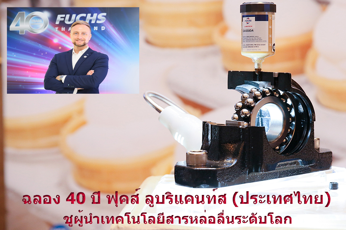 บริษัท ฟุคส์ ลูบริแคนท์ส (ประเทศไทย) จำกัด หรือ FUCHS ผู้เชี่ยวชาญและผู้นำนวัตกรรมด้านเทคโนโลยีสารหล่อลื่นจากประเทศเยอรมนี ฉลองครบรอบ 40 ปี การดำเนินธุรกิจในประเทศไทย ตอกย้ำความมุ่งมั่น ในการเป็นพันธมิตรสำคัญที่พร้อมสนับสนุนการเติบโตของภาคธุรกิจและอุตสาหกรรมไทยอย่างต่อเนื่อง ด้วยการนำเสนอโซลูชันเทคโนโลยีสารหล่อลื่นที่รองรับความต้องการใช้งานครอบคลุมทุกกลุ่มอุตสาหกรรม ทั้งด้านยานยนต์ ระบบขนส่ง อาหาร ยา เครื่องสำอาง เครื่องมือแพทย์ พลังงาน OEM และโรงงานอุตสาหกรรมต่างๆ พร้อมมุ่งมั่นที่จะพัฒนาองค์กรสู่อนาคตบนแนวทางที่เน้นความยั่งยืนด้วยงานวิจัยและพัฒนา (R&D) และสร้างคุณค่าร่วมกับทุกภาคส่วนในห่วงโซ่อุตสาหกรรม