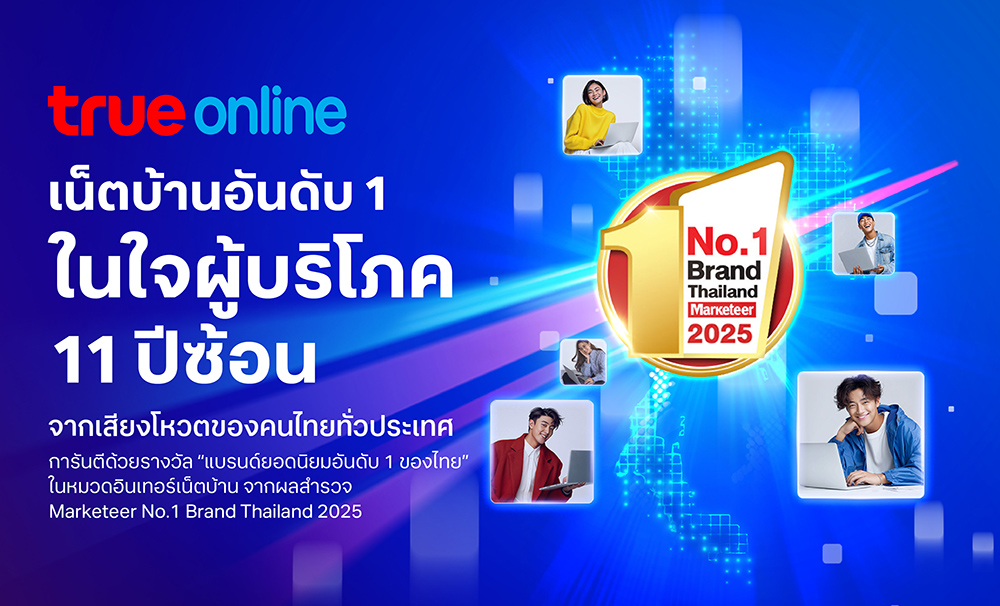 กรุงเทพฯ 22 กรกฎาคม 2568 – ทรูออนไลน์ นำโดยนายพรรคพงษ์ อัคนิวรรณ รองหัวหน้าคณะผู้บริหารด้านการตลาด และหัวหน้าสายงานออนไลน์คอนเวอร์เจนซ์ และนายพงศ์สิระ ปรุงสิน หัวหน้าฝ่ายการตลาดคอนเวอร์เจนซ์ บมจ.ทรู คอร์ปอเรชั่น พร้อมด้วยทีมงานทรูออนไลน์ ร่วมยินดีในความสำเร็จ ครองความเป็นแบรนด์ยอดนิยมอันดับหนึ่งในใจผู้บริโภค คว้ารางวัล No.1 Brand Thailand 2025 สาขาอินเทอร์เน็ตบ้าน ติดต่อกันเป็นปีที่ 11 จากงานประกาศผลและมอบรางวัล Marketeer No.1 Brand Thailand 2025