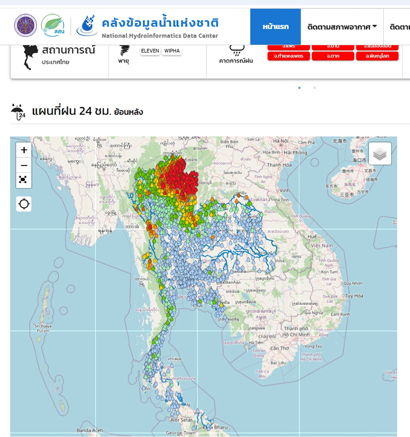 ด้าน ดร.รอยบุญ รัศมีเทศ ผอ.สถาบันสารสนเทศทรัพยากรน้ำ(สสน.) กล่าวว่า อิทธิพลของพายุโซนร้อน “วิภา” มีแนวโน้มอ่อนกำลังลง จากนั้นจะเคลื่อนตัวตามแนวร่องมรสุมที่พาดผ่านภาคเหนือตอนบนของประเทศไทย ส่งผลให้ช่วงในช่วงวันที่ 23 – 24 ก.ค.นี้ จะมีฝนตกหนักถึงหนักมาก รวมถึงลมกระโชกแรงบริเวณภาคเหนือ ภาคตะวันออกเฉียงเหนือตอนบน ภาคตะวันออก และภาคใต้ฝั่งตะวันตก ขณะที่คลื่นลมในทะเลอันดามันตอนบนและอ่าวไทยตอนบนจะสูง 2–3 เมตร อาจมากกว่า 3 เมตรในบางจุด ปริมาณฝนสะสม 24 ชั่วโมง ประเทศไทยมีฝนตกเล็กน้อยถึงปานกลางกระจายตัวทั่วทุกภูมิภาค โดยมีฝนตกหนักถึงหนักมากบริเวณจังหวัดน่าน 90 มิลลิเมตร เชียงใหม่ 85 มิลลิเมตร พิษณุโลก 75 มิลลิเมตร นครพนม 72 มิลลิเมตร เชียงราย 66 มิลลิเมตร ระนอง 62 มิลลิเมตร ตาก 61 มิลลิเมตร พิจิตร 53 มิลลิเมตร พะเยา 50 มิลลิเมตร บึงกาฬ 43 มิลลิเมตร ขณะที่ระดับน้ำในแม่น้ำสายหลัก มีน้ำล้นตลิ่งบริเวณแม่น้ำอิง จ.พะเยา ห้วยหลวง จ.อุดรธานี ลำน้ำอูน จ.สกลนคร และลำน้ำก่ำ จ.นครพนม