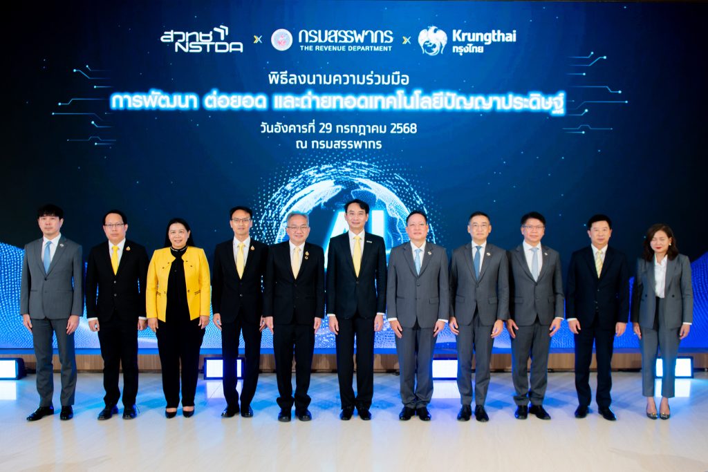 กรมสรรพากรร่วมกับสำนักงานพัฒนาวิทยาศาสตร์และเทคโนโลยีแห่งชาติ (สวทช.) ภายใต้สังกัดกระทรวงการอุดมศึกษา วิทยาศาสตร์ วิจัยและนวัตกรรม และธนาคารกรุงไทย จํากัด (มหาชน) เข้าร่วมพิธีลงนามบันทึกข้อตกลงความร่วมมือด้านการพัฒนา ต่อยอด และถ่ายทอดเทคโนโลยีปัญญาประดิษฐ์ เพื่อพัฒนาเทคโนโลยี AI ให้สอดคล้องกับยุทธศาสตร์ชาติ สนับสนุนการให้บริการประชาชนและเพิ่มประสิทธิภาพภาครัฐ