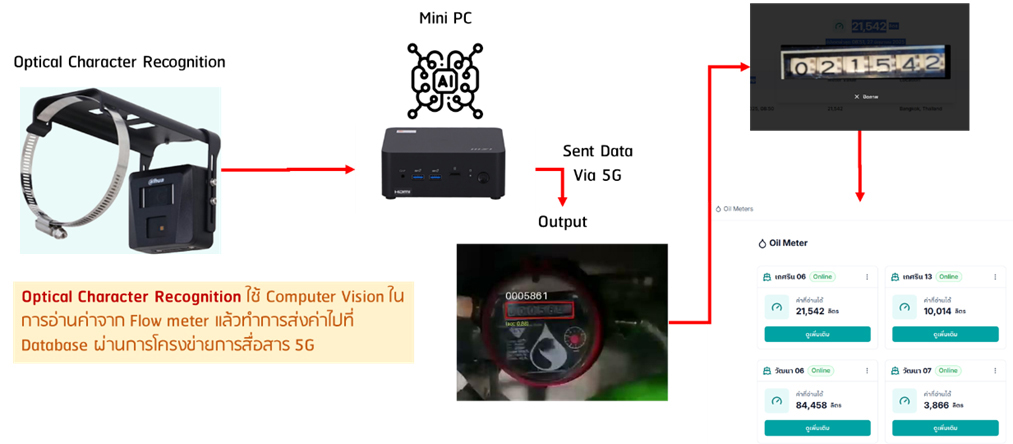 อย่างไรก็ตาม พบปัญหาในการใช้งาน Flowmeter ในช่วงโหลดสูง ทำให้คณะวิจัยพัฒนาทางเลือกใหม่โดยนำเทคโนโลยี OCR (Optical Character Recognition) ซึ่งใช้ Machine Learning และ AI ในการเรียนรู้และพัฒนาความแม่นยำร่วมกับกล้อง VDO มาใช้ในการอ่านค่ามิเตอร์แบบอนาล็อกแทน ซึ่งสามารถถ่ายภาพและแปลงเป็นข้อมูลดิจิทัลได้โดยอัตโนมัติ