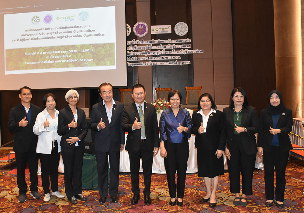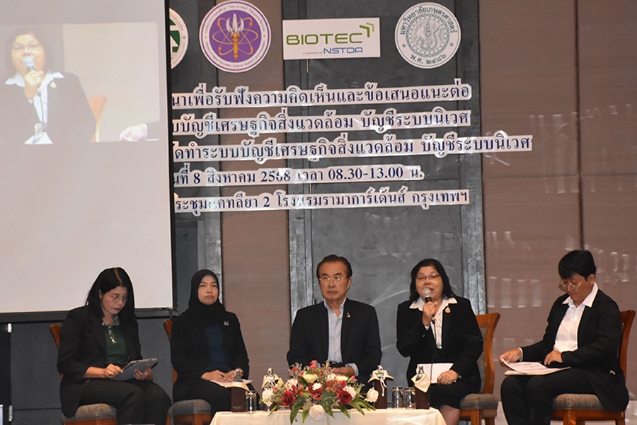 สำนักงานนโยบายและแผนทรัพยากรธรรมชาติและสิ่งแวดล้อม (สผ.) ร่วมกับศูนย์พันธุวิศวกรรมและเทคโนโลยีชีวภาพแห่งชาติ (ไบโอเทค) สำนักงานพัฒนาวิทยาศาสตร์และเทคโนโลยีแห่งชาติ (สวทช.) และคณะวนศาสตร์ มหาวิทยาลัยเกษตรศาสตร์ (มก.) จัดสัมมนารับฟังความคิดเห็นและข้อเสนอแนะต่อ “ร่างระบบบัญชีเศรษฐกิจสิ่งแวดล้อม บัญชีระบบนิเวศ และร่างคู่มือการจัดทำระบบบัญชีเศรษฐกิจสิ่งแวดล้อม บัญชีระบบนิเวศ” ภายใต้โครงการพัฒนาระบบบัญชีเศรษฐกิจสิ่งแวดล้อม (System of Environmental-Economic Accounting: SEEA) เพื่อสร้างความเข้าใจร่วมกันถึงประโยชน์ของระบบบัญชีดังกล่าว และสนับสนุนเป้าหมายการพัฒนาอย่างยั่งยืนในด้านการอนุรักษ์และการใช้ประโยชน์จากทรัพยากรธรรมชาติของประเทศอย่างสมดุล โดยมีผู้เข้าร่วมกว่า 200 คน จากภาครัฐ ภาคเอกชน ภาควิชาการ ภาคประชาสังคม และสื่อมวลชน เข้าร่วมในงาน