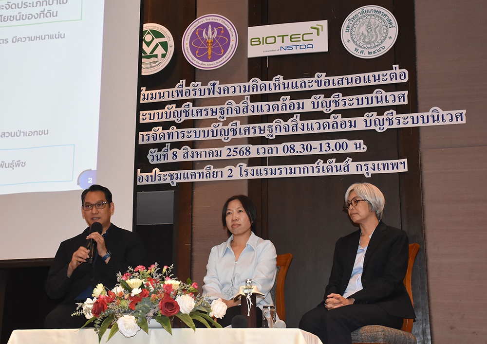 สผ. ร่วมกับ ไบโอเทค–สวทช. และคณะวนศาสตร์ ม.เกษตรฯจัดสัมมนารับฟังความคิดเห็น “ร่างระบบบัญชีเศรษฐกิจสิ่งแวดล้อม-ระบบนิเวศ”เครื่องมือใหม่เพื่อจัดการป่าไม้และพื้นที่สีเขียวอย่างยั่งยืน