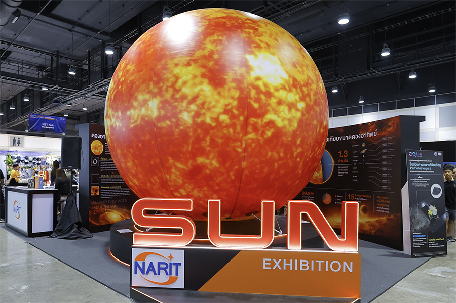 นายศุภฤกษ์ คฤหานนท์ ผู้ช่วยผู้อำนวยการสถาบันวิจัยดาราศาสตร์แห่งชาติ กล่าวว่า บูธนิทรรศการของ NARIT ในงานมหกรรมวิทยาศาสตร์และเทคโนโลยีแห่งชาติ ประจำปี 2568 มาในธีม “SUN” นำเสนอการเรียนรู้เรื่องดวงอาทิตย์ในหลากหลายแง่มุมทางวิทยาศาสตร์ ทั้งด้านโครงสร้างของดาวฤกษ์ พลังงาน และผลกระทบต่อโลก ผ่านสื่อการเรียนรู้แบบมีปฏิสัมพันธ์ เข้าใจง่าย สนุกได้ทุกวัย พร้อมกิจกรรมที่น่าสนใจ อาทิ ท้องฟ้าจำลองระบบฟูลโดมดิจิทัล ชมแสงออโรราแบบ 360 องศา ในโดมเส้นผ่านศูนย์กลาง 8 เมตร คมชัดระดับ 4K Plasma Ball สัมผัสปรากฏการณ์พลาสมาด้วยตนเอง ชมพื้นผิวดวงอาทิตย์ในช่วงคลื่นไฮโดรเจน-อัลฟา ใหญ่ยักษ์เต็มตา เห็นเปลวสุริยะชัดเจน Multi-wavelength Solar Observation ชมดวงอาทิตย์ในหลายช่วงคลื่น ทั้งแสงขาว รังสี UV และรังสีเอกซ์ ครบจบในที่เดียว บอลลูนดวงอาทิตย์ขนาดยักษ์ สำหรับถ่ายภาพเก็บเป็นที่ระลึก และนิทรรศการภาพถ่ายดาราศาสตร์ฝีมือคนไทย จากการประกวดภาพถ่ายดาราศาสตร์ประจำปี 2568