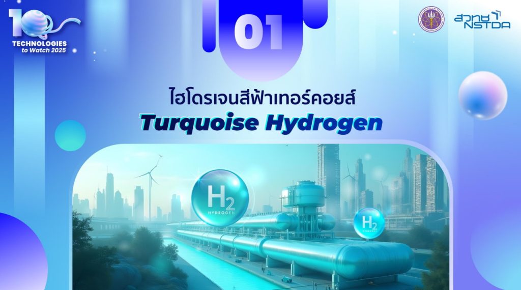 หนึ่งในกระบวนการผลิตไฮโดรเจนที่น่าจับตามองและเหมาะกับประเทศไทยซึ่งผลิตไฟฟ้าจากก๊าซธรรมชาติในสัดส่วนสูง เนื่องจากเทคโนโลยีนี้ผลิตไฮโดรเจนจากก๊าซธรรมชาติผ่านโครงสร้างพื้นฐานที่มีอยู่เดิมอย่างระบบท่อก๊าซได้ โดยนำก๊าซธรรมชาติมาผ่านการแยกสลายด้วยความร้อนเพื่อให้ได้ไฮโดรเจนโดยที่ไม่มีการปล่อยคาร์บอนไดออกไซด์ แถมยังให้ผลพลอยได้เป็นผงคาร์บอนที่นำไปใช้ต่อได้อีก ที่สำคัญยังใช้พลังงานในการผลิตน้อยกว่าการผลิตไฮโดรเจนสีเขียว ปัจจุบันการผลิตไฮโดรเจนสีฟ้าเทอร์คอยส์ก้าวหน้าไปมาก เช่น บริษัท Monolith สหรัฐอเมริกา เริ่มผลิตเชิงพาณิชย์แล้ว ด้วยเทคโนโลยีพลาสมาความร้อนสูง ได้ไฮโดรเจนและผงคาร์บอนปริมาณสูง ลดก๊าซเรือนกระจกได้สูงถึงร้อยละ 99