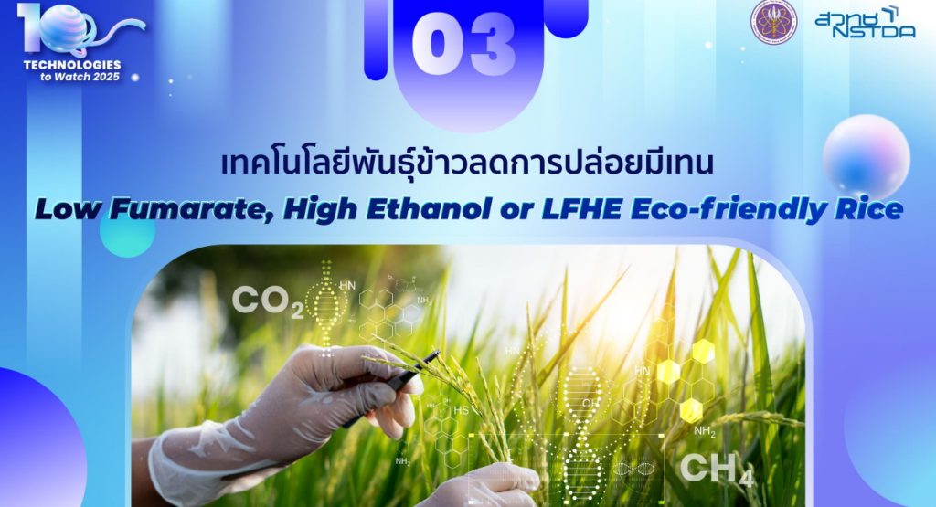 3. เทคโนโลยีพันธุ์ข้าวลดการปล่อยมีเทน (Low Fumarate, High Ethanol or LFHE Eco-friendly Rice)