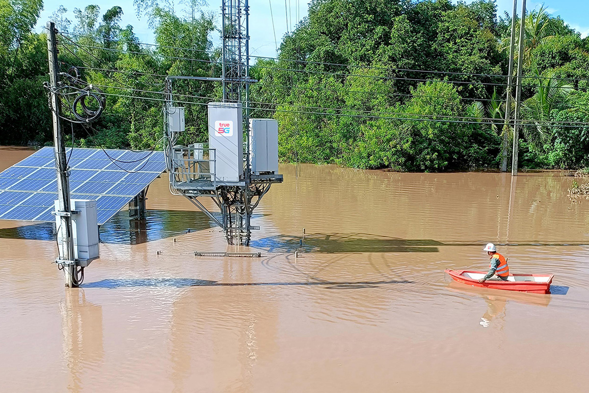 ทีมงานเน็ตเวิร์กของทรู คอร์ปอเรชั่น ได้ปฏิบัติการลงพื้นที่น้ำท่วมต่อเนื่องเพื่อดูแลคุณภาพของสัญญาณ 5G/4G แม้อยู่ในสถานการณ์ภัยพิบัติ เพื่อดูแลการสื่อสารและอุปกรณ์สถานีฐาน โดยได้ดำเนินการดังนี้