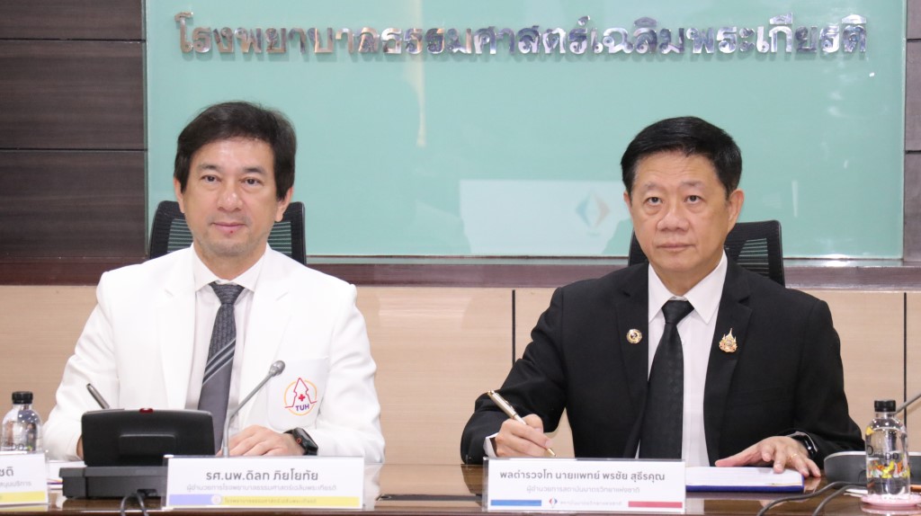 พล.ต.ท. นพ.พรชัย สุธีรคุณ ผู้อำนวยการสถาบันมาตรวิทยาแห่งชาติ (มว.) และ รศ.นพ.ดิลก ภิยโยทัย ผู้อำนวยการโรงพยาบาลธรรมศาสตร์เฉลิมพระเกียรติ ร่วมลงนามใน “บันทึกข้อตกลงว่าด้วยความร่วมมือด้านมาตรวิทยา” ณ ห้องประชุมคณะกรรมการบริหารโรงพยาบาล ชั้น 7 อาคารกิตติวัฒนา โรงพยาบาลธรรมศาสตร์เฉลิมพระเกียรติ จังหวัดปทุมธานี การลงนามในครั้งนี้เป็นความร่วมมือเพื่อยกระดับความแม่นยำของการวัดและสอบเทียบเครื่องมือทางการแพทย์ เสริมสร้างมาตรฐานความปลอดภัยให้แก่ระบบสาธารณสุขของไทยก้าวสู่ระดับสากล โดยมีนายอนุสรณ์ ทนหมื่นไวย รองผู้อำนวยการ มว. พร้อมด้วย ศ.นพ.ณัฐพล ธรรมโชติ รองผู้อำนวยการฝ่ายพัฒนากายภาพและสนับสนุนบริการ ลงนามเป็นสักขีพยาน พร้อมด้วยผู้บริหารจากทั้งสองหน่วยงานร่วมเป็นสักขีพยาน และได้เข้าเยี่ยมชมห้องปฏิบัติการทางการแพทย์ เพื่อนำข้อมูลที่ได้จากการเยี่ยมชมไปวิเคราะห์ และพัฒนาความร่วมมือให้เหมาะสมกับหน่วยงานต่อไป