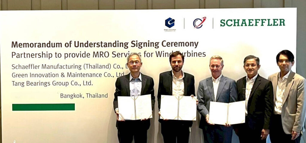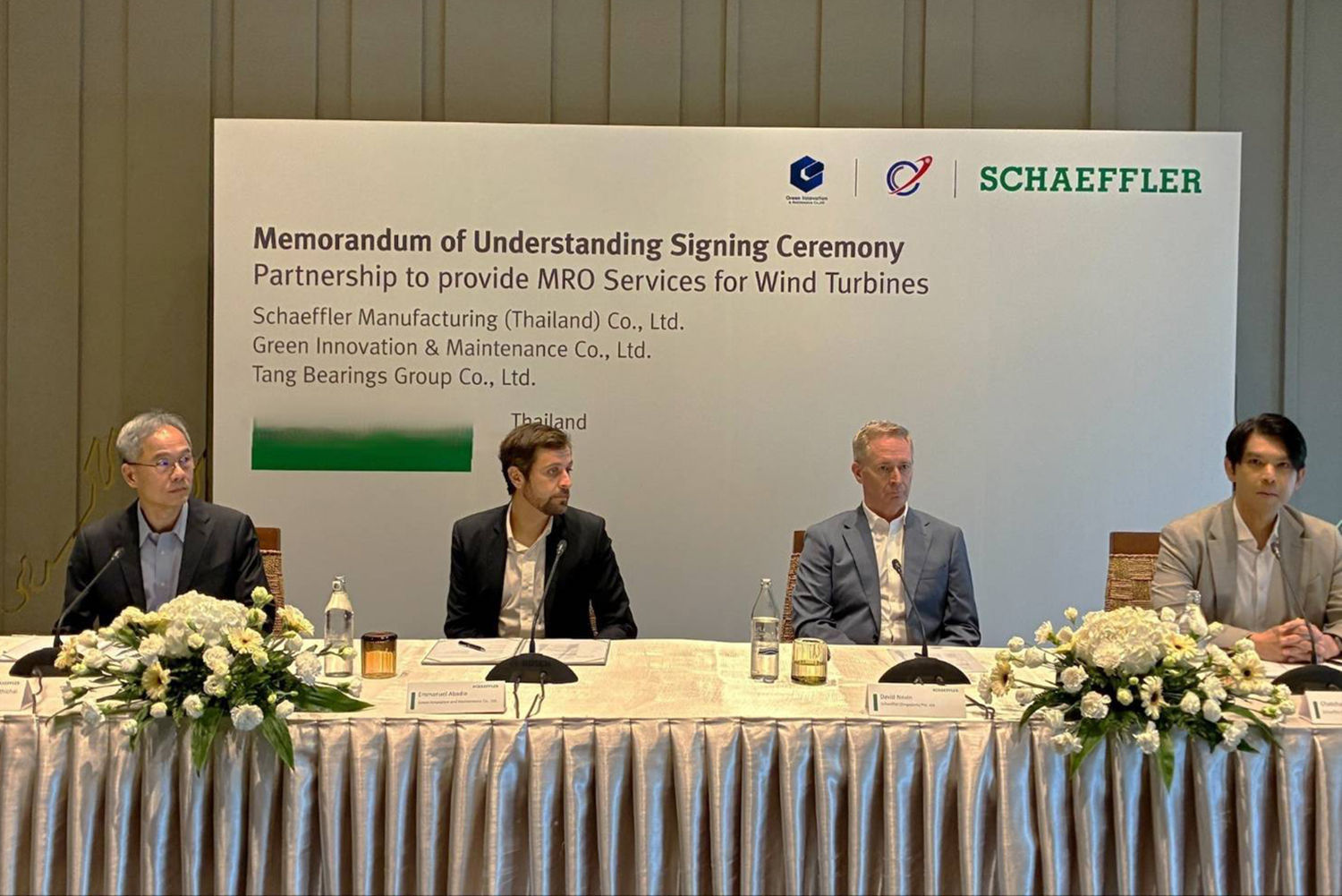 บริษัท แชฟฟ์เลอร์ ผู้นำด้านการคิดค้นพัฒนาเทคโนโลยีการขับเคลื่อน ประกาศลงนามบันทึกความเข้าใจ (MOU) กับบริษัท กรีน อินโนเวชั่น แอนด์ เมนเทนแนนซ์ จำกัด (จีไอเอ็ม) ผู้ให้บริการด้านกังหันลมชั้นนำในประเทศไทย และบริษัท ตั้ง แบริ่งส์กรุ๊ป จำกัด ซึ่งเป็นพันธมิตรทางการค้าและทางเทคนิคที่ทรงคุณค่า โดยความร่วมมือเชิงกลยุทธ์ในครั้งนี้มีเป้าหมายเพื่อยกระดับบริการด้านการดูแลรักษา การตรวจสอบ และการซ่อมบำรุงสำหรับกังหันลมในประเทศไทย