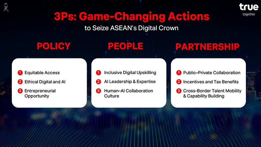 คำถามสำหรับประเทศไทยในวันนี้สำหรับเส้นทางดิจิทัลมาเกินกว่า “ความพร้อม” แต่เป็นเรื่องของ “สถานะ” ที่จะช่วงชิงความเป็นผู้นำ ท่ามกลางปัจจัยเกื้อหนุนต่างๆ ทั้งโครงสร้างพื้นฐาน ความตื่นตัวของประชาชน และตำแหน่งที่ตั้งยุทธศาสตร์ อันเป็นหัวใจของภูมิภาค ดังนั้น สิ่งที่ต้องทำต่อจากนี้คือ “ทำอย่างไร”