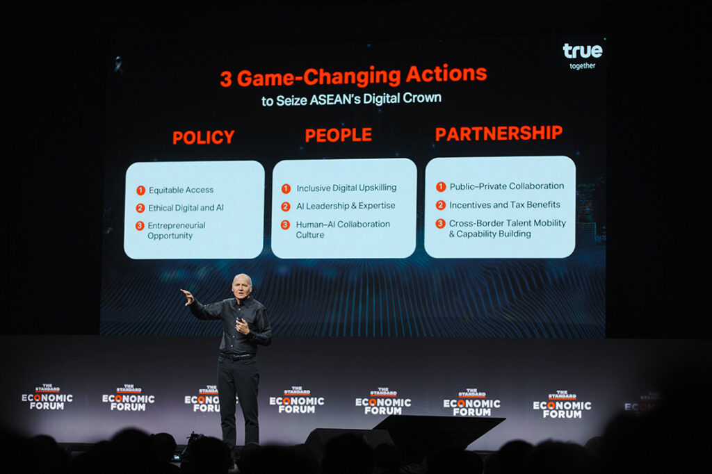 การณ์นี้ ซิกเว่ เบรกเก้ ประธานกรรมการบริหาร กลุ่มธุรกิจโทรคมนาคมและดิจิทัล เครือเจริญโภคภัณฑ์ และประธานคณะผู้บริหารกลุ่ม บริษัท ทรู คอร์ปอเรชั่น จำกัด (มหาชน) ได้แบ่งปันแนวคิดและมุมมองการพัฒนาดิจิทัลของไทยในหัวข้อ “พรมแดนใหม่เศรษฐกิจไทย: พลิกเกมดิจิทัลไทย สู่ผู้นำดิจิทัลอาเซียน” บนเวที The Standard Economic Forum 2025