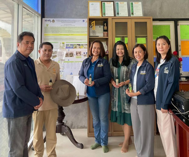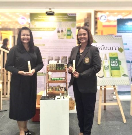 วว. NIA มรภ.กาญจนบุรี และบริษัทเลม่อนโกลด์ฯ ร่วมสนับสนุนเศรษฐกิจ BCG พัฒนาผลิตภัณฑสเปรยใหความสดชื่น บํารุงหนาจากผลผลิตพลอยไดกระบวนการผลิตน้ำมะนาวโดยใชเทคโนโลยีไมโครอิมัลชั่น
