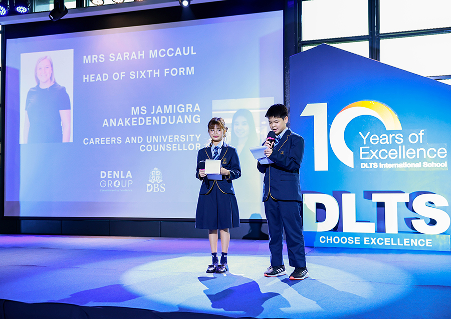 “เราเชื่อมั่นว่ารากฐานที่แข็งแกร่งในช่วงชั้นเรียนต้น เป็นสิ่งสำคัญอย่างยิ่งในการกำหนดอนาคตของนักเรียน การร่วมมือกับทีมแนะแนวผู้เชี่ยวชาญจาก DBS และ MUIDS เป็นการยืนยันถึงความมุ่งมั่นของเราในการเปิดโอกาสให้นักเรียนทุกคนได้เข้าถึงการศึกษาต่อที่ดีที่สุดและการเปิดตัว DLTS Awards ก็เป็นบทพิสูจน์ถึงความตั้งใจของเราในการยกย่องความสามารถพิเศษ และปูทางสู่ความเป็นเลิศในระดับสากล” ผศ. ดร. ต่อยศ ปาลเดชพงศ์ กล่าวเพิ่มเติมว่า