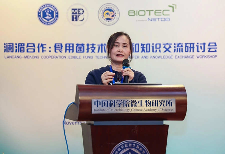 Prof. Dr. Rui-Lin Zhao ผู้เชี่ยวชาญจาก IMCAS กล่าวว่า จีนในฐานะเป็นหนึ่งในผู้ผลิตเห็ดกินได้รายใหญ่ของโลก มีความได้เปรียบอย่างมากทั้งในด้านทรัพยากร เทคโนโลยี และนวัตกรรม ขณะที่ประเทศในภูมิภาคลุ่มน้ำล้านช้าง-แม่โขงยังอยู่ในช่วงเริ่มต้นของการพัฒนาอุตสาหกรรมเห็ด ซึ่งยังมีการผลิตขนาดเล็ก ความหลากหลายของสายพันธุ์จำกัด และมีช่องว่างระหว่างอุปสงค์-อุปทานค่อนข้างมาก ส่งผลให้ต้องพึ่งพาการนำเข้าผลิตภัณฑ์เห็ดกินได้จำนวนมากทุกปี ที่น่าสังเกตและชื่นชมคือ รัฐบาลของไทย เวียดนาม และลาว ให้ความสำคัญอย่างยิ่งต่อการพัฒนาอุตสาหกรรมนี้ โดยมีการนำเข้าสายพันธุ์คุณภาพดีและเทคโนโลยีการเพาะปลูกที่ก้าวหน้าอย่างต่อเนื่อง แสดงให้เห็นถึงศักยภาพการเติบโตที่แข็งแกร่งขึ้นเรื่อย ๆ จีนพร้อมแบ่งปันความรู้และนวัตกรรมใหม่ ๆ เพื่อให้ประเทศเพื่อนบ้านในลุ่มน้ำโขงสามารถนำไปต่อยอดและใช้ประโยชน์จากทรัพยากรเห็ดได้อย่างเต็มศักยภาพ