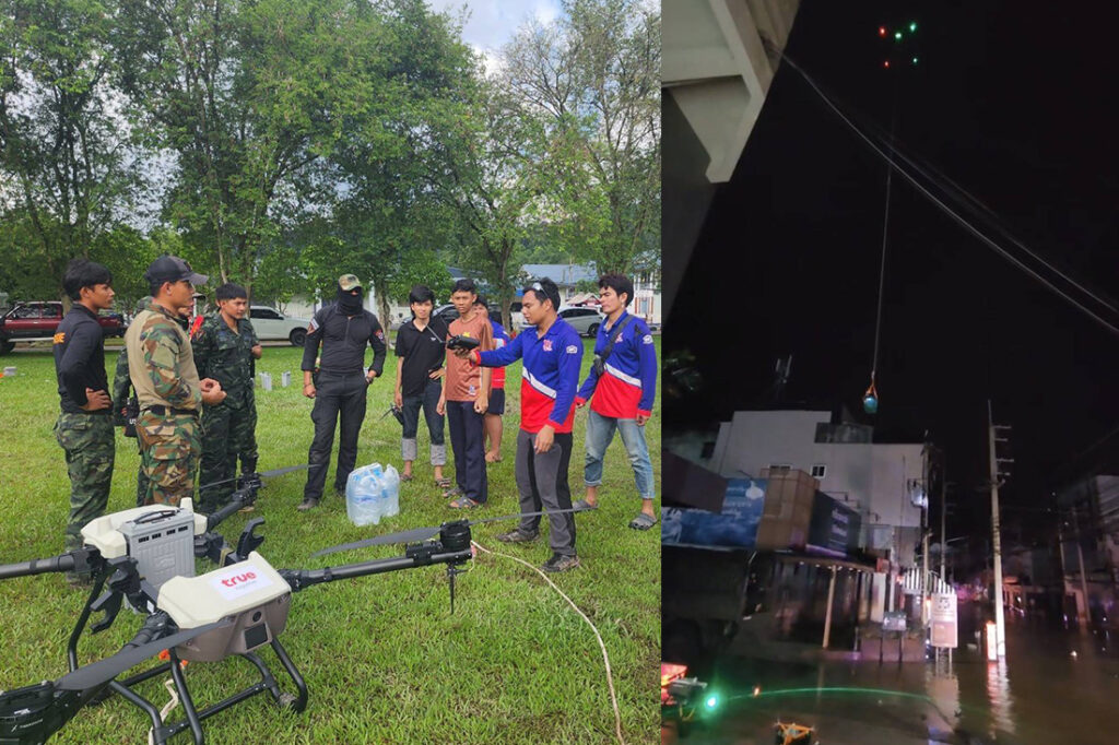 ทรูได้นำฝูงโดรนรุ่น TGD25 จำนวน 20 ลำ พร้อมแบตเตอรี่ แท่นชาร์จ และเครื่องปั่นไฟ ลงสนับสนุนภารกิจกู้ภัยครั้งนี้ โดยแต่ละลำสามารถบรรทุกสิ่งของได้ถึง 25 ลิตร ช่วยให้การลำเลียงอาหาร ยา และของใช้จำเป็นเป็นไปอย่างต่อเนื่อง คล่องตัว และแม่นยำ ผ่านระบบกำหนดพิกัดแบบเรียลไทม์ เข้าถึงจุดที่รถเข้าไม่ได้แต่ “ความช่วยเหลือต้องเข้าให้ถึง” ตลอดภารกิจ ทีมวิศวกรภาคสนามของทรูทำงานเคียงข้างพี่ๆ ทหารและหน่วยงานในพื้นที่ กำกับการบินอย่างใกล้ชิดในทุกเที่ยวบิน เพื่อให้ทุกภาระจัดส่งเป็นไปอย่างปลอดภัย มีมาตรฐาน และสอดประสานกับการทำงานของทีมกู้ภัยบนภาคพื้นดินในทุกขั้นตอน