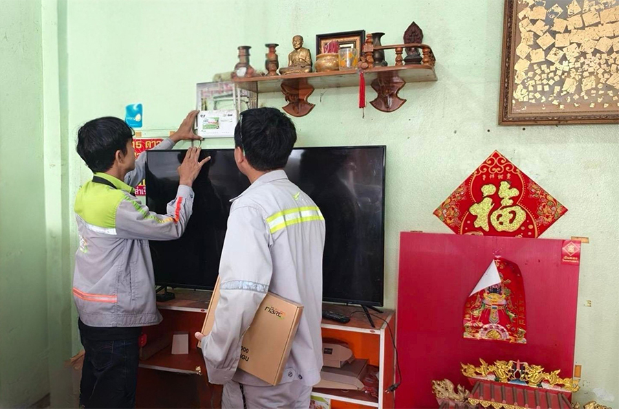 ทีมงานลงพื้นที่ดูแลลูกค้าเชิงรุกถึงหน้าบ้าน เปลี่ยนอุปกรณ์ WiFi Router และ Playbox ที่ชำรุดจากน้ำท่วมให้ใช้งานได้ทันที โดยไม่มีค่าใช้จ่าย สำหรับบ้านที่ไฟฟ้าและโครงข่ายกลับมาพร้อมใช้งานแล้ว โดยไม่ต้องรอให้ลูกค้าแจ้งปัญหา เพื่อช่วยให้ทุกครอบครัวกลับมาเชื่อมต่อออนไลน์ ติดต่อคนใกล้ชิด ทำงาน และใช้ชีวิตได้เร็วที่สุด