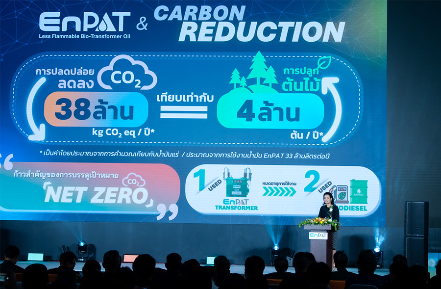 ดร.สุมิตรา จรสโรจน์กุล ผู้อำนวยการศูนย์เทคโนโลยีพลังงานแห่งชาติ (ENTEC) สวทช. กล่าวว่า วันนี้ ENTEC ขอเปิดบทใหม่ของอุตสาหกรรมพลังงานไทย โดยเชื่อมโยงห่วงโซ่มูลค่าตั้งแต่เกษตรกรผู้ปลูกปาล์มไปจนถึงระบบไฟฟ้าในเมืองหลวง สืบเนื่องจากมติคณะรัฐมนตรีที่ผลักดันการเพิ่มมูลค่าปาล์มน้ำมัน ENTEC จึงพัฒนาน้ำมันหม้อแปลงไฟฟ้าชีวภาพ (ENPAT) ตามกลยุทธ์ S&T Implementation for Sustainable Thailand (STIST) ของ สวทช. โครงการนี้ได้รับการสนับสนุนจากหน่วยงานสำคัญ ได้แก่ หน่วยบริหารและจัดการทุนด้านการเพิ่มความสามารถในการแข่งขันของประเทศ (บพข.) การไฟฟ้านครหลวง (กฟน.) การไฟฟ้าส่วนภูมิภาค (กฟภ.) การไฟฟ้าฝ่ายผลิตแห่งประเทศไทย (กฟผ.) บริษัท พี.เอส.พี.สเปเชียลตี้ส์ จำกัด (มหาชน) บริษัท โกลบอลกรีนเคมิคอล จำกัด (มหาชน) บริษัท เจริญชัยหม้อแปลงไฟฟ้า จำกัด และสำนักงานมาตรฐานผลิตภัณฑ์อุตสาหกรรม (สมอ.)