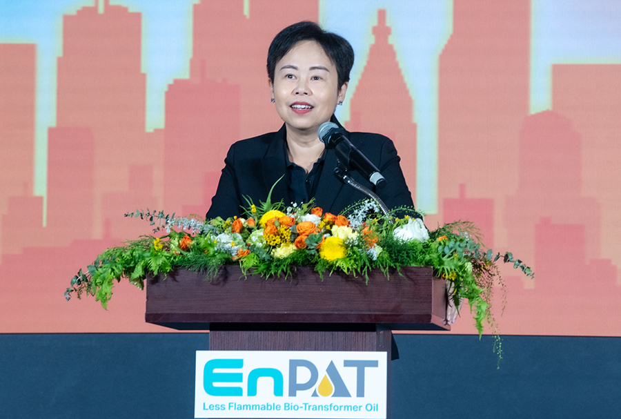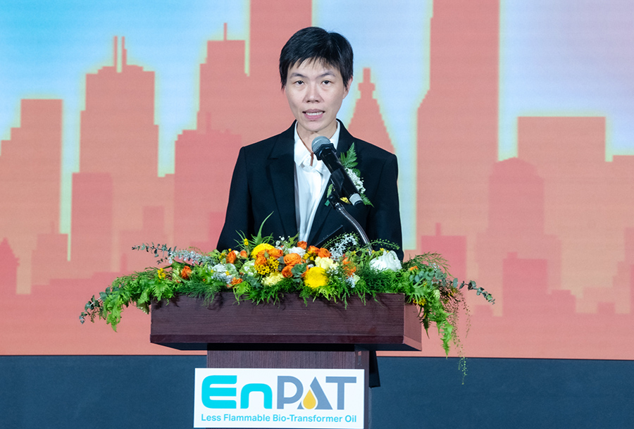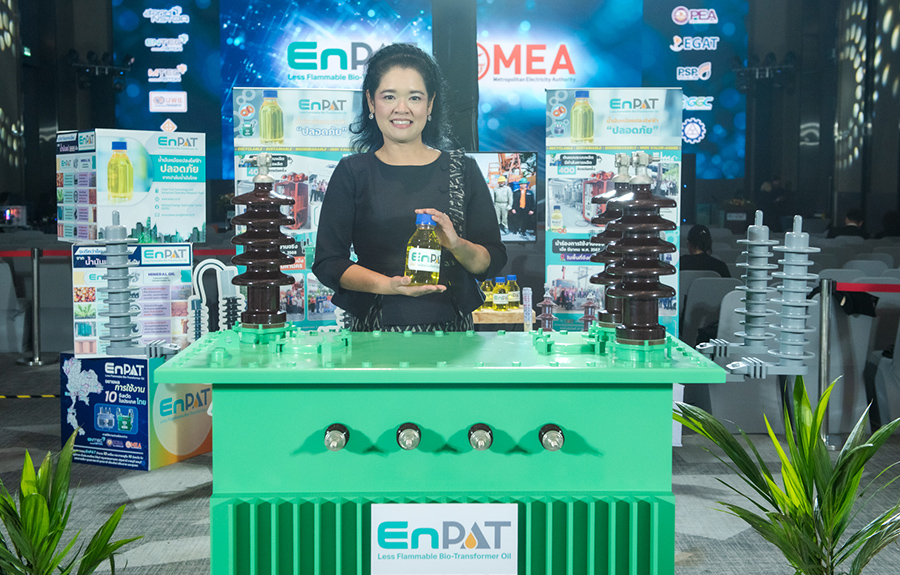 ผศ. ดร.กานดา บุญโสธรสถิตย์ ผู้อำนวยการ หน่วยบริหารและจัดการทุนด้านการเพิ่มความสามารถในการแข่งขันของประเทศ (บพข.) กล่าวว่า EnPAT ได้รับรางวัล “PMUC Country First Award ครั้งแรกของไทย งานวิจัยเปลี่ยนประเทศ” ซึ่งแสดงให้เห็นศักยภาพในการรวมผู้มีส่วนเกี่ยวข้องตลอดห่วงโซ่มูลค่า (Value Chain) ของอุตสาหกรรมน้ำมันหม้อแปลงชีวภาพมาร่วมกันผลักดันให้เกิดระบบนิเวศที่เหมาะสมและพร้อมต่อการใช้งานเชิงพาณิชย์ การนำร่องใช้งานหม้อแปลงบรรจุ EnPAT ครั้งแรกของประเทศที่ จ.ชลบุรี โดย กฟภ. การต่อยอดในพื้นที่กรุงเทพมหานครโดย กฟน. และการขยายการใช้งานเพิ่มเติมในอนาคต โดย กฟผ. จะเป็นพลังสำคัญในการสร้างความต้องการ ที่ชัดเจนและผลักดันการผลิตและใช้งานน้ำมันหม้อแปลงชีวภาพในระดับอุตสาหกรรม ความสำเร็จในวันนี้แสดงถึงการบูรณาการงานวิจัย ภาคอุตสาหกรรม และผู้ให้บริการไฟฟ้า เพื่อสร้าง ความต้องการเชิงพาณิชย์อย่างเป็นรูปธรรม และเป็นอีกหนึ่งก้าวสำคัญที่สะท้อนว่า EnPAT ไม่ใช่เพียงการสร้างโอกาสทางการค้า แต่ยังเป็นการส่งเสริมภาคการเกษตรตามยุทธศาสตร์การเพิ่มมูลค่าผลผลิตตั้งแต่ต้นน้ำ เพื่อสร้างความมั่นคงทางรายได้และยกระดับคุณภาพชีวิตของเกษตรกรปาล์มน้ำมันไทยกว่า 400,000 ครัวเรือนทั่วประเทศ