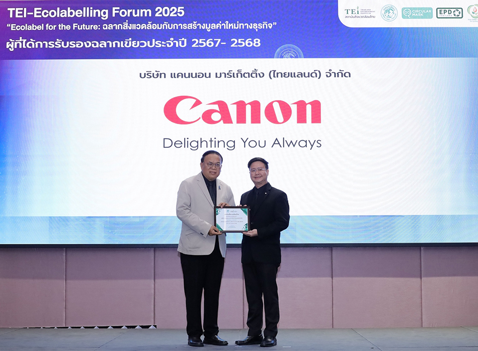 เครื่องพิมพ์มัลติฟังก์ชัน แคนนอน 14 รุ่น ได้รับเกียรติบัตร “ฉลากเขียว”จากสถาบันสิ่งแวดล้อมไทยในงาน “TEI-Ecolabelling Forum 2025: Ecolabel for the Future ฉลากสิ่งแวดล้อมกับการสร้างมูลค่าใหม่ทางธุรกิจ”