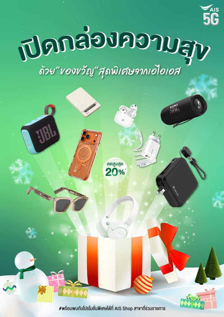 AIS ต้อนรับช่วงเวลาแห่งการเฉลิมฉลอง ยกขบวนความฟินส่งมอบ “ความสุขแบบจัดเต็ม” แทนคำขอบคุณและความไว้วางใจจากลูกค้าทั่วประเทศในทุกเซ็กเมนต์ ยกทัพของขวัญปีใหม่ มอบส่วนลดและสิทธิพิเศษมากมาย เพื่อต้อนรับเทศกาลปีใหม่ที่กำลังจะมาถึง สร้างสีสัน ความคึกคัก รอยยิ้ม และความอุ่นใจให้ทุกการใช้งาน ตลอดช่วงวันหยุดยาว อาทิแคมเปญ “AIS 1 POINT 12 WEEKS 12 WOW!” ใช้ เอไอเอส พอยท์ 1 คะแนน แลกความว้าว