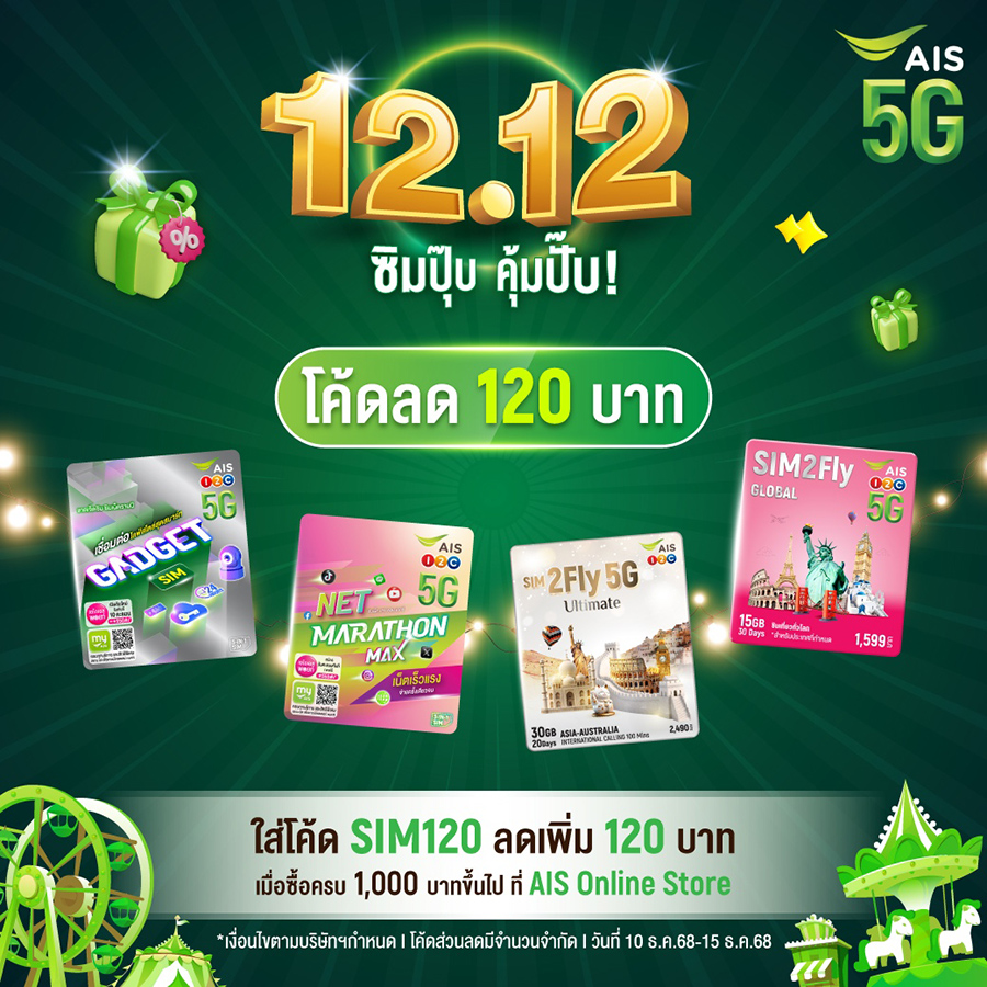 - มอบคูปองรับของฟรี! จากแบรนด์ดังมากกว่า 20 แบรนด์ ตลอดเดือนธันวาคม เพียงใช้ เอไอเอส พอยท์ 1 คะแนน แลกรับฟรีคูปอง หรือส่วนลดสุดคุ้มจากแบรนด์ดังมากกว่า 20 แบรนด์ ครอบคลุมทุกไลฟ์สไตล์ ทั้งกิน ดื่ม และช้อปปิ้ง เก็บคูปองผ่านแอป myAIS ตั้งแต่วันนี้ – 25 ธันวาคม 2568 เวลา 10.00 น. เป็นต้นไป หรือจนกว่าสิทธิ์จะเต็ม โดยคูปองสามารถใช้ได้ถึงวันที่ 31 ธันวาคม 2568 จำกัด 1 หมายเลข เลือกเก็บคูปองได้ 1 สิทธิ์ตลอดเดือนธันวาคม 2568 (ยกเว้นการแลกรับสิทธิพิเศษในวันที่ 12 ธันวาคม 2568 และ 19 ธันวาคม 2568)