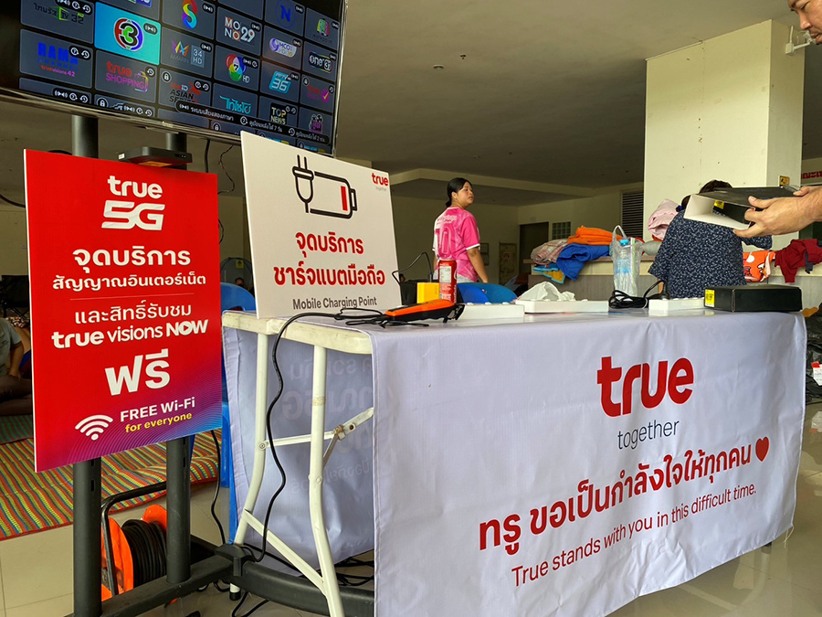 พร้อมกันนี้ ทรู คอร์ปอเรชั่น ได้เปิดให้บริการฟรี WiFi ภายในศูนย์พักพิงฯ เพื่อสนับสนุนการติดต่อสื่อสารรวมถึงมอบน้ำดื่มและอาหารแห้ง เพื่อบรรเทาความเดือดร้อนของประชาชนในพื้นที่ รวมถึงระดมรถโมบายล์สถานีฐานเคลื่อนที่เร็ว (COW) ประจำศูนย์พักพิงฯ ทั้งนี้ ทรู คอร์ปอเรชั่น ยังขยายมาตรการช่วยเหลือลูกค้าโดยต่ออายุมาตรการยืดชำระค่าบริการออกไปจนถึงวันที่ 22 ธันวาคม นี้