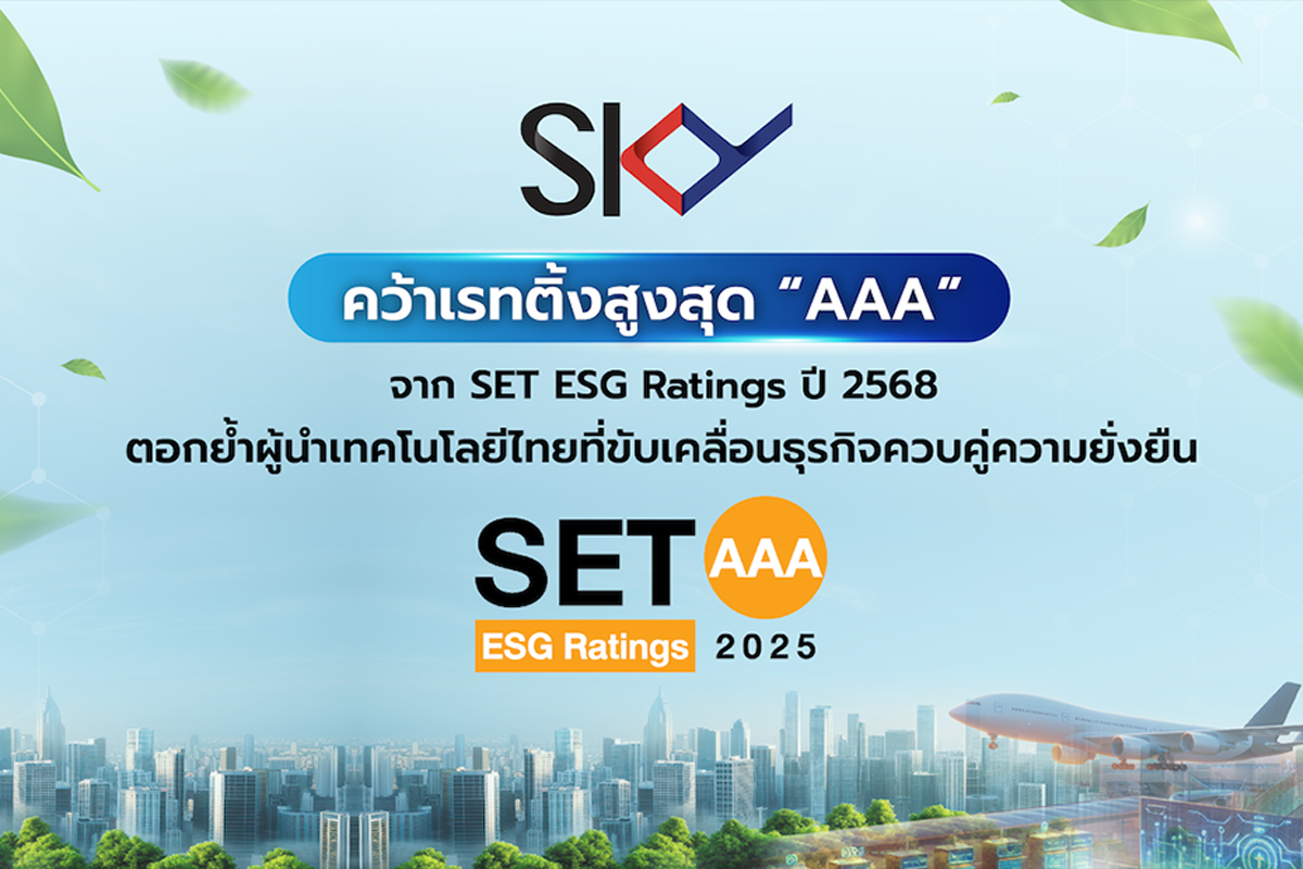 บริษัท สกาย ไอซีที จำกัด (มหาชน) หรือ SKY ICT ตอกย้ำสถานะผู้นำด้านเทคโนโลยีดิจิทัลของประเทศไทย หลังได้รับการจัดอันดับ SET ESG Ratings 2025 ในระดับสูงสุด “AAA” จากตลาดหลักทรัพย์แห่งประเทศไทย (SET) สะท้อนความเป็นเลิศในการดำเนินธุรกิจภายใต้กรอบ Environmental, Social และ Governance (ESG) อย่างเป็นระบบ โปร่งใส และยั่งยืน สร้างความเชื่อมั่นให้แก่นักลงทุน สถาบันการเงิน และกองทุนที่ให้ความสำคัญกับการลงทุนระยะยาว การได้รับเรทติ้ง “AAA” ซึ่งเป็นระดับสูงสุดของ SET ESG Ratings ในปี 2568 ถือเป็นเครื่องยืนยันว่า SKY ICT ไม่เพียงเติบโตจากผลประกอบการและศักยภาพทางธุรกิจเท่านั้น แต่ยังสามารถผสาน กลยุทธ์เทคโนโลยี เข้ากับ ความรับผิดชอบต่อสังคม สิ่งแวดล้อม และธรรมาภิบาล ได้อย่างสมดุลในทุกมิติขององค์กร