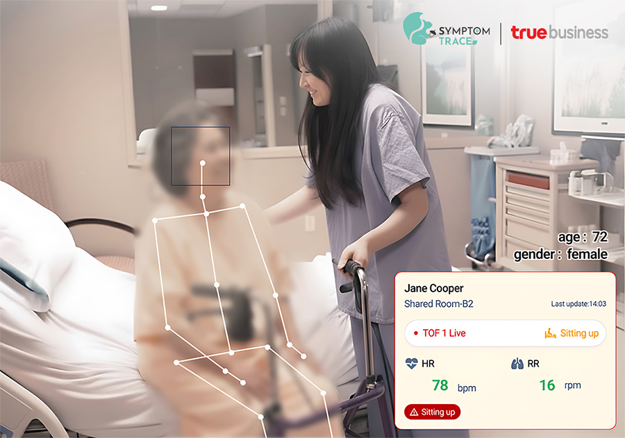 กรุงเทพฯ 19 ธันวาคม 2568 – ทรูบิสิเนส เดินหน้าทรานสฟอร์มอุตสาหกรรมสาธารณสุขไทยสู่ดิจิทัล ผนึกกำลังร่วมกับ SymptomTrace สตาร์ทอัพด้านเฮลท์เทคสัญชาติไต้หวันที่มุ่งใช้ AI ขับเคลื่อนการบริหารจัดการโรคเรื้อรัง พัฒนานวัตกรรมโซลูชัน 5G Patient Digital Twin ผสานอัจฉริยภาพเครือข่ายทรู 5G และ AI เปลี่ยนวิถีการดูแลผู้ป่วยเรื้อรัง ชูเทคโนโลยีอุปกรณ์เซ็นเซอร์ตรวจวัดค่าสุขภาพได้แบบไร้การสัมผัสขั้นสูง ดูแลและเฝ้าระวังผู้ป่วยได้อย่างใกล้ชิด รวดเร็ว ปลอดภัย และมีประสิทธิภาพมากขึ้น โดยไม่ต้องรบกวนการพักผ่อนของผู้ป่วย ครอบคลุมทั้งการวัดสัญญาณชีพและการเคลื่อนไหวของร่างกาย ส่งข้อมูลสุขภาพแบบเรียลไทม์ผ่านเครือข่ายทรู 5G เพื่อวิเคราะห์และประมวลผลด้วย Edge AI Analytics พร้อมเพิ่มศักยภาพในการบริหารจัดการดูแลผู้ป่วยโดยรวมผ่านแพลตฟอร์มศูนย์กลาง สามารถแจ้งเตือนบุคลากรทางการแพทย์ทันทีเมื่อพบความผิดปกติหรือเหตุฉุกเฉิน ทั้งยังเอื้อประโยชน์ในการใช้ข้อมูลสุขภาพ ภายใต้ความเป็นส่วนตัวและความปลอดภัยของข้อมูลขั้นสูง เพื่อวางแผนฟื้นฟูดูแลรักษาผู้ป่วยเฉพาะรายอย่างต่อเนื่อง ส่งเสริมการแพทย์เฉพาะบุคคลให้เกิดขึ้นได้จริงในประเทศไทย เผยเตรียมส่งโซลูชัน 5G Patient Digital Twin เข้าสู่ตลาดผู้ให้บริการด้านสาธารณสุข ทั้งโรงพยาบาล ศูนย์ดูแลผู้ป่วย และสถาบันดูแลสุขภาพ ในปี 2569