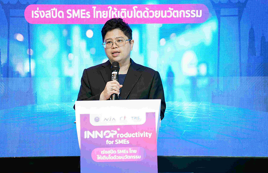 ดังนั้น หัวใจสำคัญคือการพัฒนา ‘นวัตกรรม’ ควบคู่กับการพัฒนา ‘ผลิตภาพ’ ในการดำเนินธุรกิจ ที่ไม่ใช่การนำเทคโนโลยีเข้ามาใช้เพียงอย่างเดียว แต่ต้องเป็นการวางระบบการจัดการนวัตกรรมในองค์กรอย่างเหมาะสม สอดคล้องกับบริบท ขนาด และศักยภาพของแต่ละธุรกิจ เพื่อให้เกิดผลลัพธ์ทางเศรษฐกิจที่จับต้องได้ ทั้งในมิติการเพิ่มรายได้ การลดต้นทุน และการยกระดับขีดความสามารถในการแข่งขันในระยะยาว จากแนวคิดดังกล่าว NIA จึงได้ริเริ่ม ‘โครงการ INNOProductivity for SMEs – เร่งสปีด SMEs ไทยให้เติบโตด้วยนวัตกรรม’ โดยผนึกความร่วมมือกับสถาบันเพิ่มผลผลิตแห่งชาติ ซึ่งมีความเชี่ยวชาญด้านการเพิ่มผลิตภาพ และบริษัท ทริส คอร์ปอเรชั่น จำกัด ผู้เชี่ยวชาญด้านการประเมินและพัฒนาองค์กร เพื่อออกแบบกระบวนการสนับสนุนเอสเอ็มอีไทยอย่างครบวงจร ตั้งแต่การประเมินศักยภาพ การให้คำปรึกษาเชิงลึก ไปจนถึงการวางแผนพัฒนาองค์กรเชิงกลยุทธ์อย่างเป็นระบบ