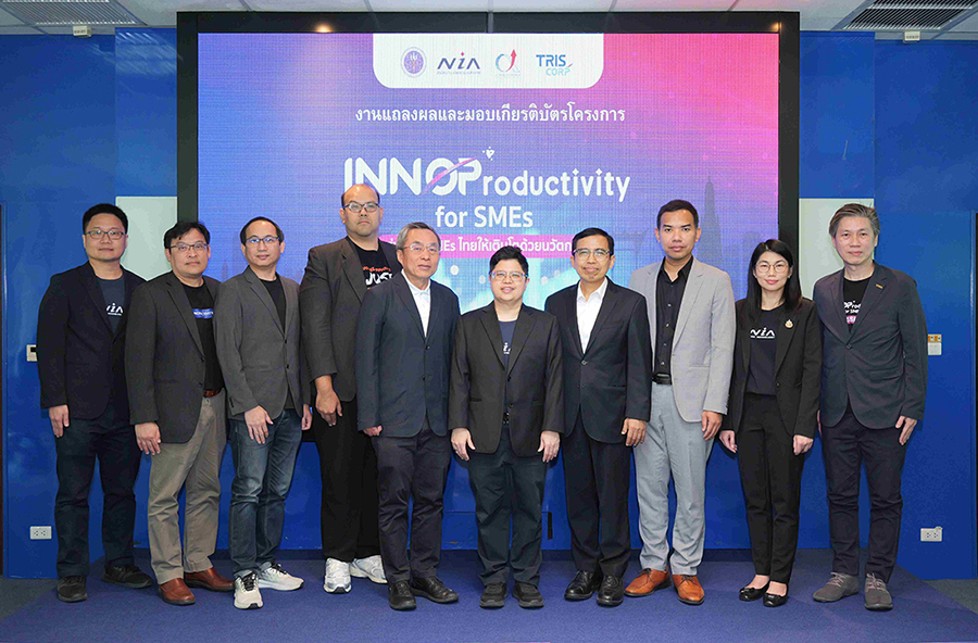 กรุงเทพฯ 24 ธันวาคม 2568 – สำนักงานนวัตกรรมแห่งชาติ (องค์การมหาชน) หรือ NIA กระทรวงการอุดมศึกษา วิทยาศาสตร์ วิจัยและนวัตกรรม (อว.) ร่วมกับสถาบันเพิ่มผลผลิตแห่งชาติ และบริษัท ทริส คอร์ปอเรชั่น จำกัด เดินหน้ายกระดับศักยภาพผู้ประกอบการไทย ผ่านโครงการ “INNOProductivity for SMEs – เร่งสปีด SMEs ไทยให้เติบโตด้วยนวัตกรรม” โดยมุ่งเน้นการเสริมสร้างความสามารถในการแข่งขันของเอสเอ็มอีไทยสู่การเป็นธุรกิจฐานนวัตกรรมอย่างเป็นระบบ เพื่อให้ผู้ประกอบการเอสเอ็มอีไทยสามารถปรับตัว อยู่รอด และเติบโตได้อย่างยั่งยืน ท่ามกลางความท้าทายด้านเศรษฐกิจและการแข่งขันที่รุนแรง โดยโครงการมุ่งพัฒนานวัตกรรมควบคู่ผลิตภาพผ่าน