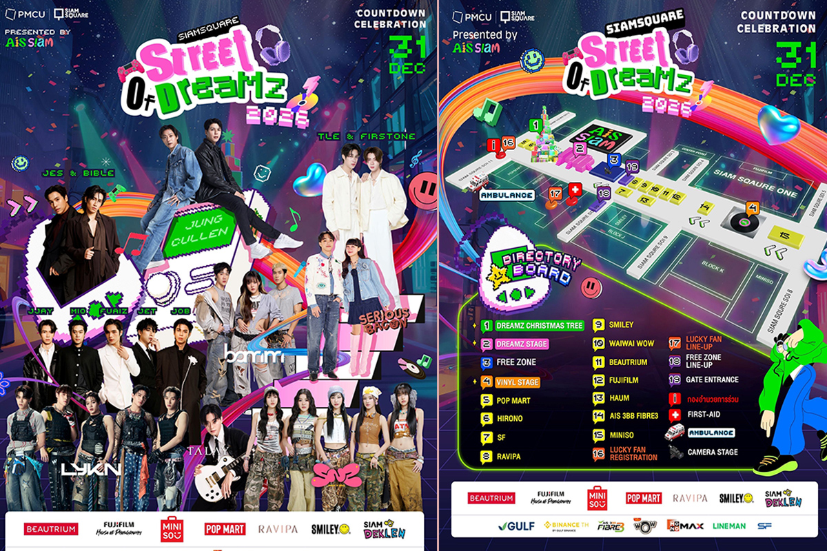31ธ.ค.นี้ ปักหมุดเคานต์ดาวน์สยามสแควร์! “SIAM SQUARE STREET OF DREAMZ 2026” AIS SIAM x PMCU จัดเต็มศิลปินดังนันสต็อป ชวน Gen C ปล่อยพลังข้ามปี
