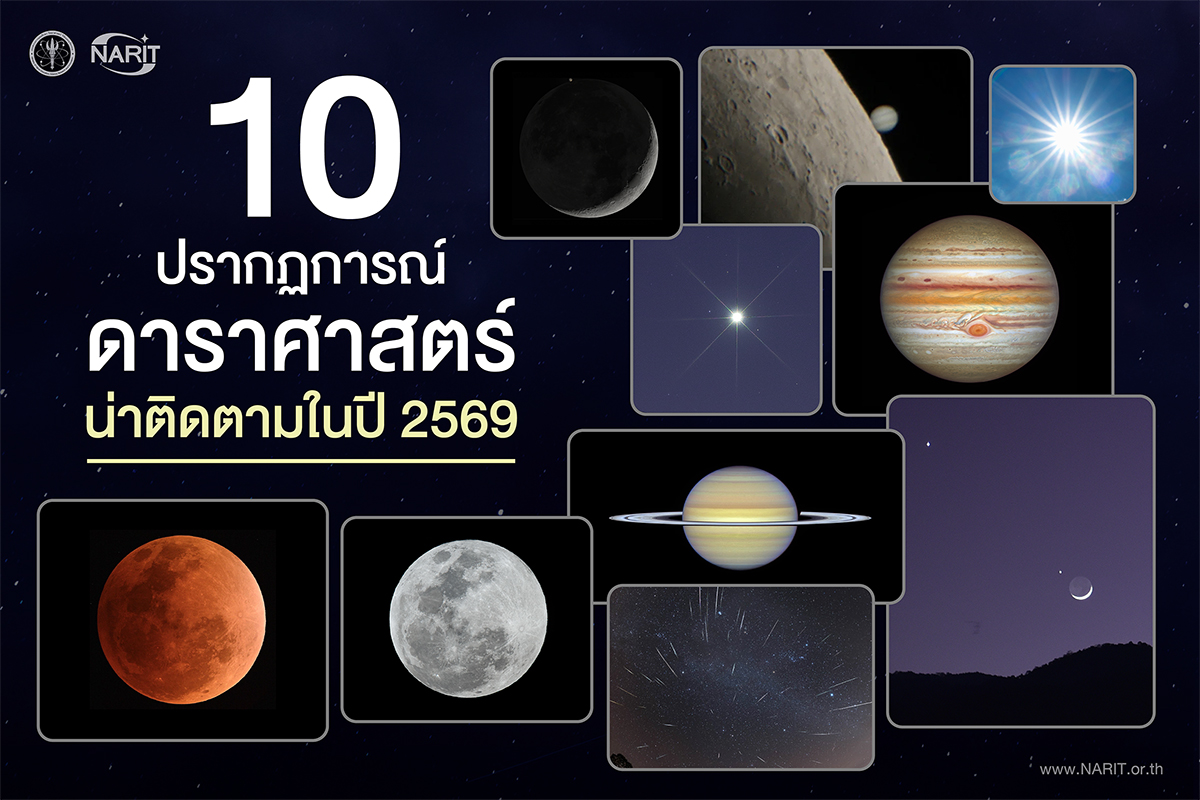 สถาบันวิจัยดาราศาสตร์แห่งชาติ (องค์การมหาชน) (สดร. หรือ NARIT) กระทรวงการอุดมศึกษา วิทยาศาสตร์ วิจัย และนวัตกรรม (อว.) เปิดโผ 10 ปรากฏการณ์ดาราศาสตร์น่าติดตามปี 2569 ประเดิมเปิดศักราชใหม่กับ“ดาวพฤหัสบดีใกล้โลก” ในวันเด็กแห่งชาติ และตามมาอีกหลายปรากฏการณ์เด่นทั้งจันทรุปราคาเต็มดวง ดวงจันทร์ใกล้-ไกลโลก ดวงจันทร์บังดาวศุกร์ ดาวศุกร์สว่างที่สุด ดาวเสาร์ใกล้โลก ดวงจันทร์บังดาวพฤหัสบดีดวงอาทิตย์ตั้งฉาก รวมถึงฝนดาวตก และดาวเคียงเดือนมีให้ติดตามชมได้ตลอดปี