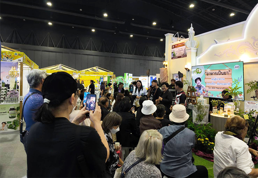 พร้อมกันนี้ ยังมีการสาธิตเครื่องดื่มสุขภาพ เช่น คอมบูชามะขามป้อม–ขมิ้นชัน ที่มีจุลินทรีย์ดีต่อระบบลำไส้ ช่วยการขับถ่าย สุขภาพสมอง และลดความเสี่ยงโรคหัวใจและหลอดเลือด รวมถึง ลาเต้อัญชัน ที่อุดมด้วยสารแอนโทไซยานิน ต้านอนุมูลอิสระและเสริมความแข็งแรงของหลอดเลือด ภายในงานยังมีการแจกหนังสือความรู้สมุนไพรวันละ 100 เล่มแก่ผู้เข้าร่วมงาน