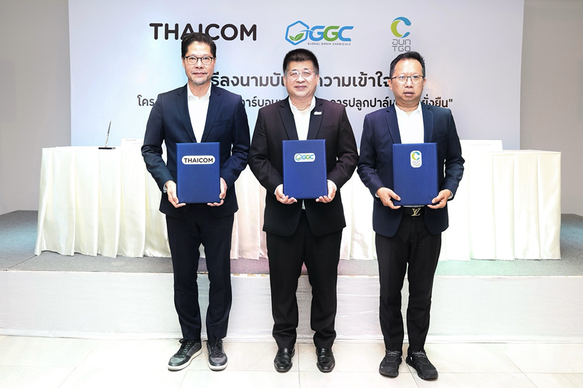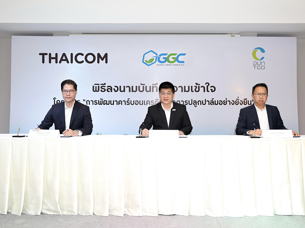 28 มกราคม 2569, กระบี่- บริษัท โกลบอลกรีนเคมิคอล จำกัด (มหาชน) หรือ “GGC” ร่วมกับ บริษัท ไทยคม จำกัด (มหาชน) หรือ “THAICOM” และองค์การบริหารจัดการก๊าซเรือนกระจก (องค์การมหาชน) หรือ “TGO” ร่วมลงนามบันทึกความร่วมมือเพื่อดำเนินโครงการ “การพัฒนาคาร์บอนเครดิตจากการปลูกปาล์มอย่างยั่งยืน” โดยได้ร่วมกันศึกษาความเป็นไปได้และแนวทางการนำระบบวิทยาศาสตร์และเทคโนโลยีมาใช้ในการตรวจสอบพื้นที่สวนปาล์ม พร้อมทั้งประเมินปริมาณการกักเก็บคาร์บอนจากสวนปาล์ม เพื่อนำไปขึ้นทะเบียนคาร์บอนเครดิตในโครงการการลดก๊าซเรือนกระจกภาคสมัครใจตามมาตรฐานของประเทศไทย ซึ่งความร่วมมือครั้งนี้ ถือเป็นก้าวสำคัญในการยกระดับอุตสาหกรรมปาล์มน้ำมันในการพัฒนาสู่ธุรกิจและสังคมคาร์บอนต่ำที่ยั่งยืน และเป็นการสร้างมูลค่าเพิ่มให้กับผลิตภัณฑ์จากปาล์มน้ำมันของประเทศไทย