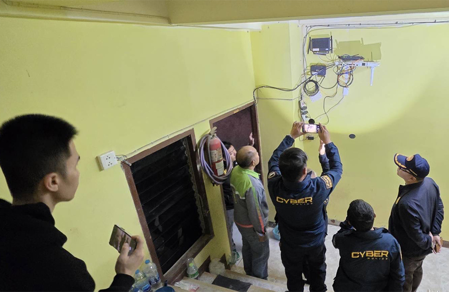 จากการเข้าตรวจค้น พบว่าอาคารทั้ง 3 หลัง ไม่มีผู้อยู่อาศัย แต่เจ้าหน้าที่พบอุปกรณ์คอมพิวเตอร์ดัดแปลงใช้ในการรวบรวมสัญญาณอินเทอร์เน็ตเชื่อมต่อกับอุปกรณ์กระจายสัญญาณข้ามประเทศ จึงได้ทำการระงับสัญญาณ พร้อมรื้อถอนอุปกรณ์ในที่เกิดเหตุเพื่อเป็นหลักฐานในการดำเนินคดี โดยขณะนี้ เจ้าหน้าที่อยู่ระหว่างรวบรวมพยานหลักฐาน ตรวจสอบผู้เกี่ยวข้อง และขยายผลเพิ่มเติมเพื่อดำเนินคดีตามกฎหมาย