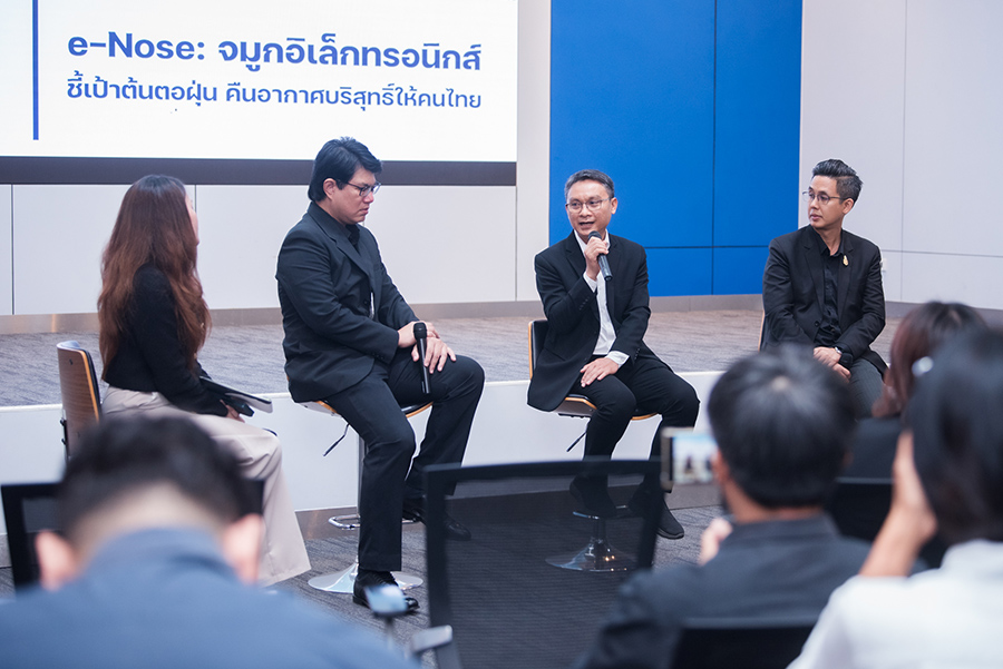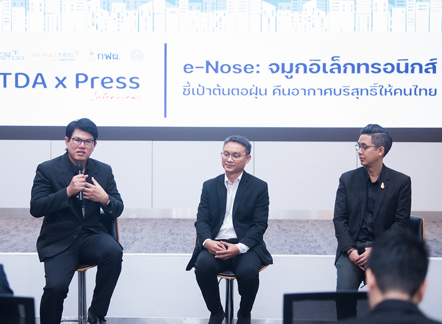 ขณะที่ ดร.ศักดา ตรีเดช ผู้อำนวยการส่วนนวัตกรรมคุณภาพอากาศและเสียง กรมควบคุมมลพิษ (คพ.) ซึ่งเป็นหน่วยงานกำหนดนโยบาย ภายใต้กระทรวงทรัพยากรธรรมชาติและสิ่งแวดล้อม (ทส.) กล่าวว่า หัวใจสำคัญของการควบคุมมลพิษคือ “ข้อมูลที่แม่นยำ” (Precision Monitoring) ประเทศไทยจำเป็นต้องมีนวัตกรรมที่สามารถชี้เป้าแหล่งกำเนิดฝุ่นได้ตรงจุด e-Nose จะเป็นจิ๊กซอว์สำคัญที่สร้างฐานข้อมูลบิ๊กดาต้าให้กับกรมควบคุมมลพิษ เพื่อนำไปจัดทำมาตรการรับมือ บังคับใช้กฎหมาย และวางกรอบนโยบายควบคุมคุณภาพอากาศของประเทศให้เข้าเป้าและเกิดผลสัมฤทธิ์สูงสุด