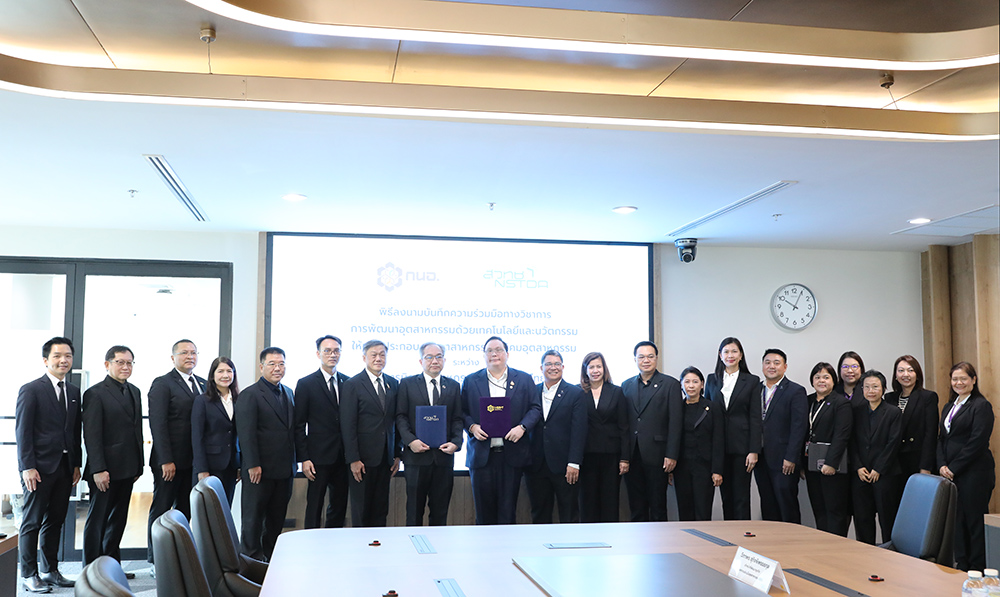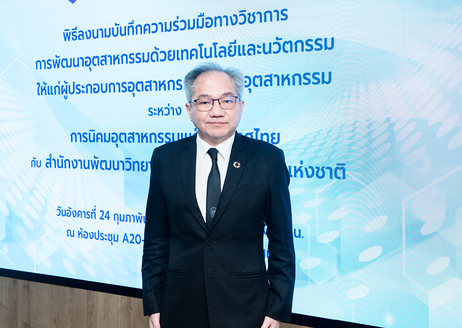 (24 กุมภาพันธ์ 2569) ณ ห้องประชุม A20-1 ชั้น 20 อาคาร A การนิคมอุตสาหกรรมแห่งประเทศไทย–กระทรวงการอุดมศึกษา วิทยาศาสตร์ วิจัยและนวัตกรรม(อว.) โดย สำนักงานพัฒนาวิทยาศาสตร์และเทคโนโลยีแห่งชาติ(สวทช.) ร่วมกับ กระทรวงอุตสาหกรรม โดย การนิคมอุตสาหกรรมแห่งประเทศไทย (กนอ.) จัดพิธีลงนามบันทึกความร่วมมือทางวิชาการ (MOU) การพัฒนาอุตสาหกรรมด้วยเทคโนโลยีและนวัตกรรมให้แก่ผู้ประกอบการอุตสาหกรรมในนิคมอุตสาหกรรม เพื่อบูรณาการองค์ความรู้ทางวิทยาศาสตร์และเทคโนโลยีเพื่อเพิ่มขีดความสามารถในการแข่งขันให้กับภาคอุตสาหกรรมไทย