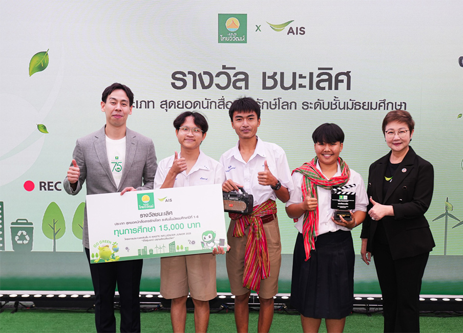 เอไอเอส ร่วมกับ บริษัท ประกันภัยไทยวิวัฒน์ จำกัด (มหาชน) ตอกย้ำความร่วมมือในการขับเคลื่อนการจัดการขยะอิเล็กทรอนิกส์ (E-Waste) อย่างยั่งยืน ผ่านโครงการ “E-Waste Influencer Junior ฮีโร่รุ่นเยาว์ ปลุกพลังเปลี่ยนโลก” เวทีประกวดคลิปวิดีโอสั้นที่เปิดพื้นที่ให้เยาวชนไทยได้แสดงศักยภาพในฐานะนักสื่อสารสิ่งแวดล้อมรุ่นใหม่ ใช้พลังโซเชียลมีเดียเป็นเครื่องมือสร้างการเปลี่ยนแปลงเชิงบวกแก่สังคม มุ่งส่งเสริมให้เด็กและเยาวชนตระหนักถึงปัญหา E-Waste เรียนรู้แนวทางการจัดการอย่างถูกต้อง และร่วมเป็นส่วนหนึ่งในการสร้างเครือข่ายโรงเรียนต้นแบบด้านสิ่งแวดล้อมในอนาคต โดยได้รับการตอบรับเป็นอย่างดี มีผู้ส่งผลงานเข้าร่วมประกวดรวมทั้งสิ้น 295 คลิป แบ่งเป็นระดับประถมศึกษา 27 คลิป และระดับมัธยมศึกษา 268 คลิป สะท้อนถึงพลังการมีส่วนร่วมของเยาวชนไทยทั่วประเทศ