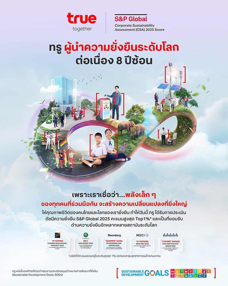 ทั้งนี้ สามารถดูรายละเอียดเพิ่มเติมเกี่ยวกับ การดำเนินงานด้านความยั่งยืนของบมจ. ทรู คอร์ปอเรชั่น ได้ที่ https://www.true.th/sustainability/ และรายงาน S&P Global The Sustainability Yearbook 2026ได้ที่ http://bit.ly/4ldmewx