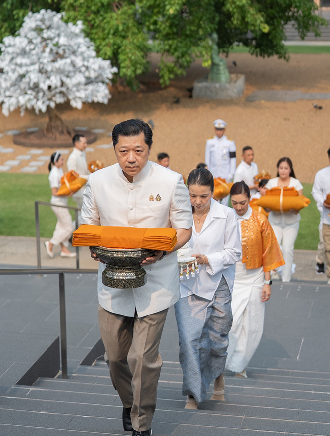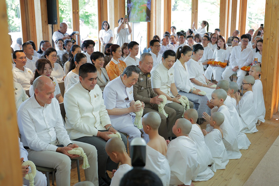 ในโอกาสนี้ นายธนินท์ เจียรวนนท์ ประธานอาวุโส เครือเจริญโภคภัณฑ์ ในฐานะประธานฝ่ายฆราวาสและโยมอุปถัมภ์ โครงการสามเณร ปลูกปัญญาธรรม (ที่ 6 จากขวา) นายอนุพงศ์ สุขสมนิตย์ ผู้ว่าราชการจังหวัดนครราชสีมา (ที่ 5 จากซ้าย) พล.ต.ท.พฤทธิพงษ์ ประยูรศิริ ผู้บัญชาการตำรวจภูธรภาค 3 (ที่ 4 จากซ้าย) ดร.อาจอง ชุมสาย ณ อยุธยา ที่ปรึกษาโครงการฝ่ายฆราวาส (ที่ 3 จากซ้าย) นายศุภชัย เจียรวนนท์ รองประธานอาวุโส เครือเจริญโภคภัณฑ์ / ประธานกรรมการ บมจ. ทรู คอร์ปอเรชั่น และผู้ริเริ่มโครงการสามเณร ปลูกปัญญาธรรม (ที่ 5 จากขวา) รวมถึง นายซิกเว่ เบรกเก้ ประธานคณะผู้บริหารกลุ่ม บมจ. ทรู คอร์ปอเรชั่น (ที่ 3 จากขวา) พร้อมด้วยคณะผู้บริหารเครือเจริญโภคภัณฑ์ และบมจ. ทรู คอร์ปอเรชั่น ร่วมอนุโมทนาบุญและส่งกำลังใจแก่สามเณรทั้ง 12 รูป ในการเริ่มต้นบทเรียนชีวิตบนวิถีแห่งธรรมอย่างงดงาม