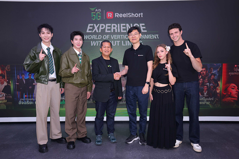 AIS รุกตลาดซีรีส์แนวตั้ง ผนึก ReelShort แพลตฟอร์มระดับโลก ยกระดับประสบการณ์ความบันเทิงรูปแบบใหม่ ก้าวขึ้นเป็นผู้นำอันดับ 1 ของตลาดที่รวบรวมคลังซีรีส์แนวตั้งมากที่สุด รวมกว่า 4,000 เรื่อง ครบทุกแนว ทุกรส ทุกอารมณ์ ตอกย้ำบทบาท Digital Intelligent Platform ที่ผสานโครงข่ายอัจฉริยะเข้ากับคอนเทนต์ระดับโลก เพื่อส่งมอบความบันเทิงแบบไร้ขีดจำกัด รับเทรนด์ “Verticaltainment” โดยต่อยอดจากอินไซต์ลูกค้า AIS ที่พบว่าการใช้งานแอปซีรีส์แนวตั้งเติบโตสูงถึง 56% ในปีที่ผ่านมา สะท้อนพฤติกรรมผู้บริโภคที่หันมานิยมคอนเทนต์สั้น ดูง่าย ติดยาว เข้าถึงได้ทุกที่ทุกเวลาพร้อมเปิดตัวแพ็กเกจ 5G ReelShort ราคาเพียง 39 บาทต่อเดือน เพื่อปลดล็อกประสบการณ์ความบันเทิงพร้อมเน็ตสุดคุ้ม ตอบทุกโจทย์ไลฟ์สไตล์ดิจิทัลอย่างแท้จริง ความร่วมมือในครั้งนี้ยังถือเป็นการจับมือร่วมกับผู้ให้บริการเครือข่ายโทรคมนาคมเป็นครั้งแรกในเอเชียตะวันออกเฉียงใต้ของ ReelShort ซึ่งเป็นการวางตำแหน่งให้ประเทศไทยเป็นจุดยุทธศาสตร์สำคัญในการขยายธุรกิจไปทั่วภูมิภาค