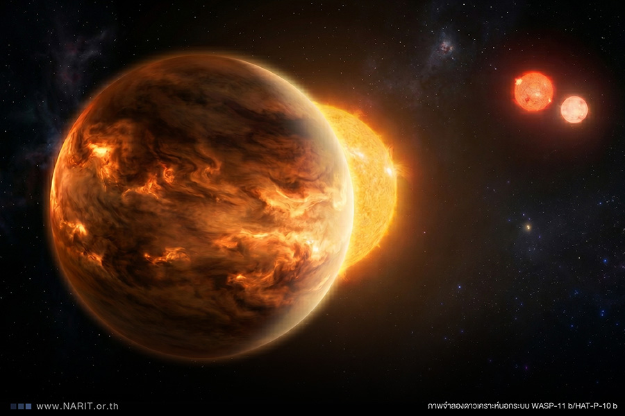 ดร. ศุภชัย อาวิพันธุ์ นักวิจัยดาวเคราะห์และสิ่งมีชีวิตนอกระบบสุริยะ NARIT กล่าวว่า ดาวเคราะห์นอกระบบสุริยะ WASP-11 b/HAT-P-10 b เป็นดาวเคราะห์แก๊สยักษ์ที่มีอุณหภูมิสูง หรือ ดาวพฤหัสบดีร้อน (Hot Jupiter) ผลการวิจัยก่อนหน้าพบว่าดาวเคราะห์นี้มีมวลประมาณ 0.79 เท่า และมีรัศมีประมาณ 0.99 เท่าของดาวพฤหัสบดี โคจรรอบดาวฤกษ์แม่ที่เป็นดาวแคระส้ม (K-dwarf) ในระบบดาวฤกษ์ 3 ดวง (Triple Star System) ด้วยระยะห่างที่ใกล้มาก โดยมีคาบการโคจรเพียง 3.72 วัน และมีอุณหภูมิเฉลี่ยในชั้นบรรยากาศสูงถึงประมาณ 1,000 เคลวิน ลักษณะดังกล่าวทำให้ดาวเคราะห์ WASP-11 b/HAT-P-10 b เป็นเป้าหมายที่เหมาะสมอย่างยิ่งในการศึกษาองค์ประกอบชั้นบรรยากาศผ่านเทคนิคสเปกตรัมส่องผ่าน (Transmission Spectroscopy)