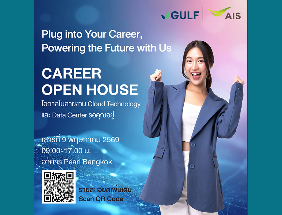 GULF และ AIS เดินหน้าตอกย้ำบทบาทผู้นำด้านโครงสร้างพื้นฐานที่เคียงข้างคนไทย จัดงาน Open House เปิดบ้านครั้งสำคัญเพื่อรับสมัครงานบุคลากรสายเทคหลากหลายสาขา อาทิ Data Center Operation, Cloud Product, Data Analytics, Network Operations Center, Technical Sales, International Connectivity มาร่วมเป็นส่วนหนึ่งของการขับเคลื่อนธุรกิจดิจิทัลที่กำลังขยายตัวอย่างต่อเนื่อง เพื่อรองรับเทคโนโลยีแห่งอนาคต ทั้ง Data Center, Cloud, AI, Digital Infrastructure, Enterprise Digital Services และ Digital Bank สะท้อนถึงทิศทางการเติบโตของ GULF และ AIS ในการยกระดับขีดความสามารถด้านดิจิทัลของประเทศไทย ผ่านการพัฒนาโครงสร้างพื้นฐานเทคโนโลยีที่มีความสำคัญต่อภาคธุรกิจ อุตสาหกรรม และเศรษฐกิจดิจิทัลในระยะยาว